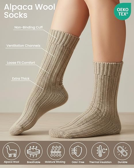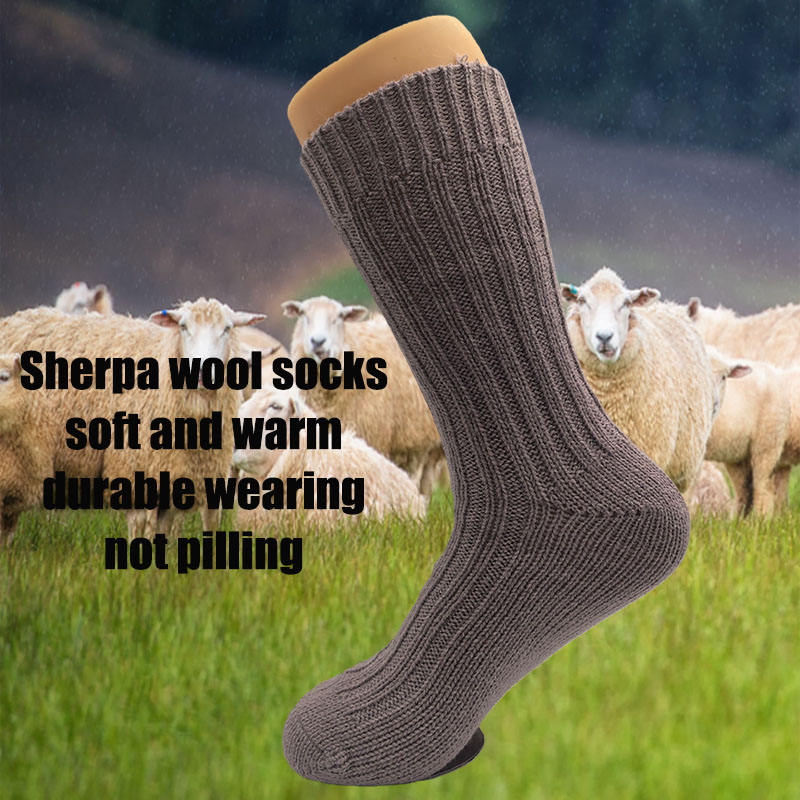 Chaussettes d'hiver douillettes en laine/nylon pour hommes et femmes, extra épaisses, avec fonction antibactérienne, logo sur la semelle/le corps de la chaussette