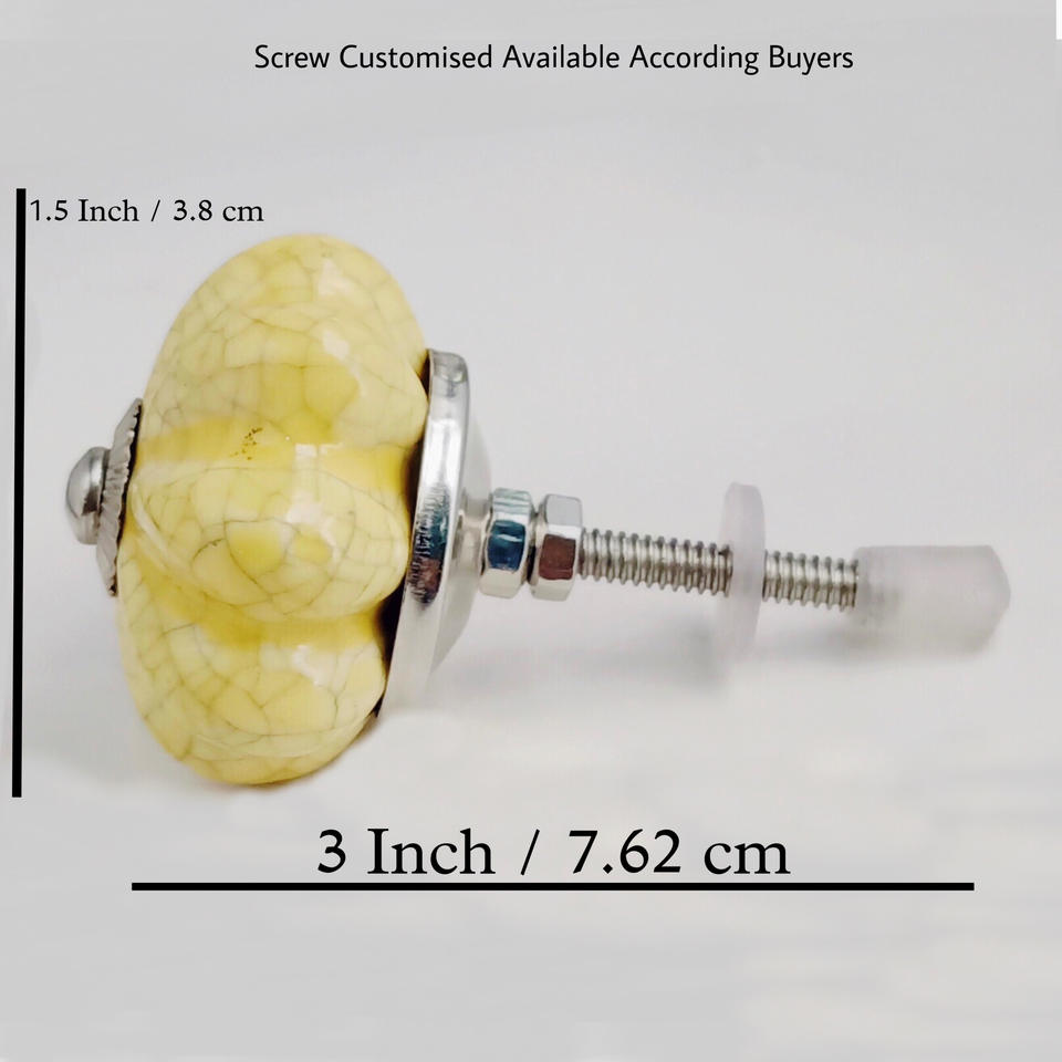 Crackle Yellow Melon Ceramic Knobs Industrial Design Drawer Cabinet Handle Pulls for Kitchen Dresser Living Room Dining