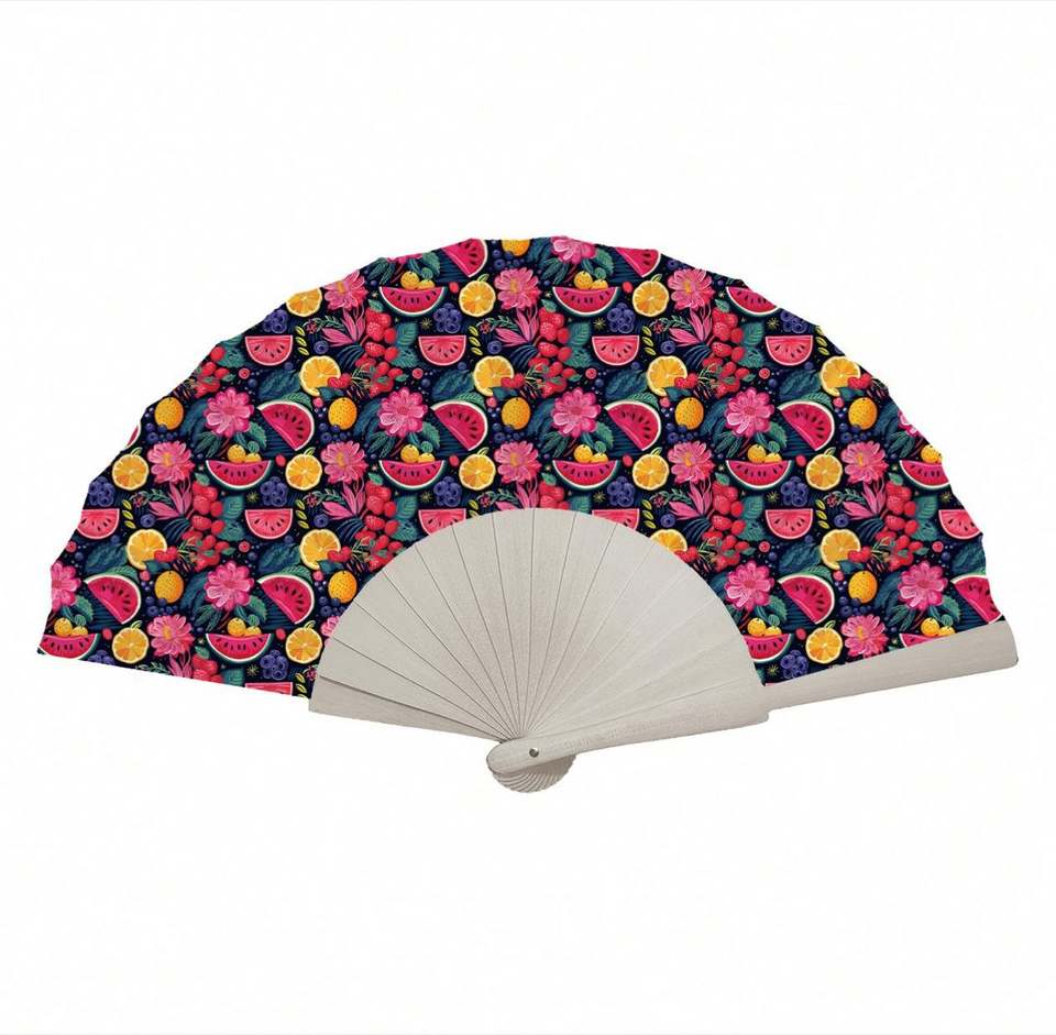 Éventail pliant portable en bois, motif floral, animal ou ange, 33 cm, souvenir pour la maison, idéal pour la promotion publicitaire.