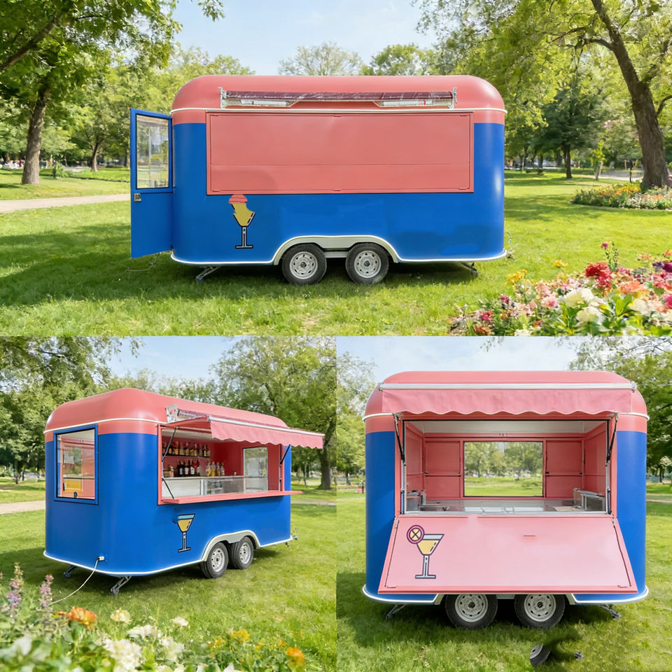 Chariot mobile à 4 roues en acier inoxydable bicolore pour la vente de glaces, boissons spéciales et apéritifs dans les lieux de vie nocturne urbains