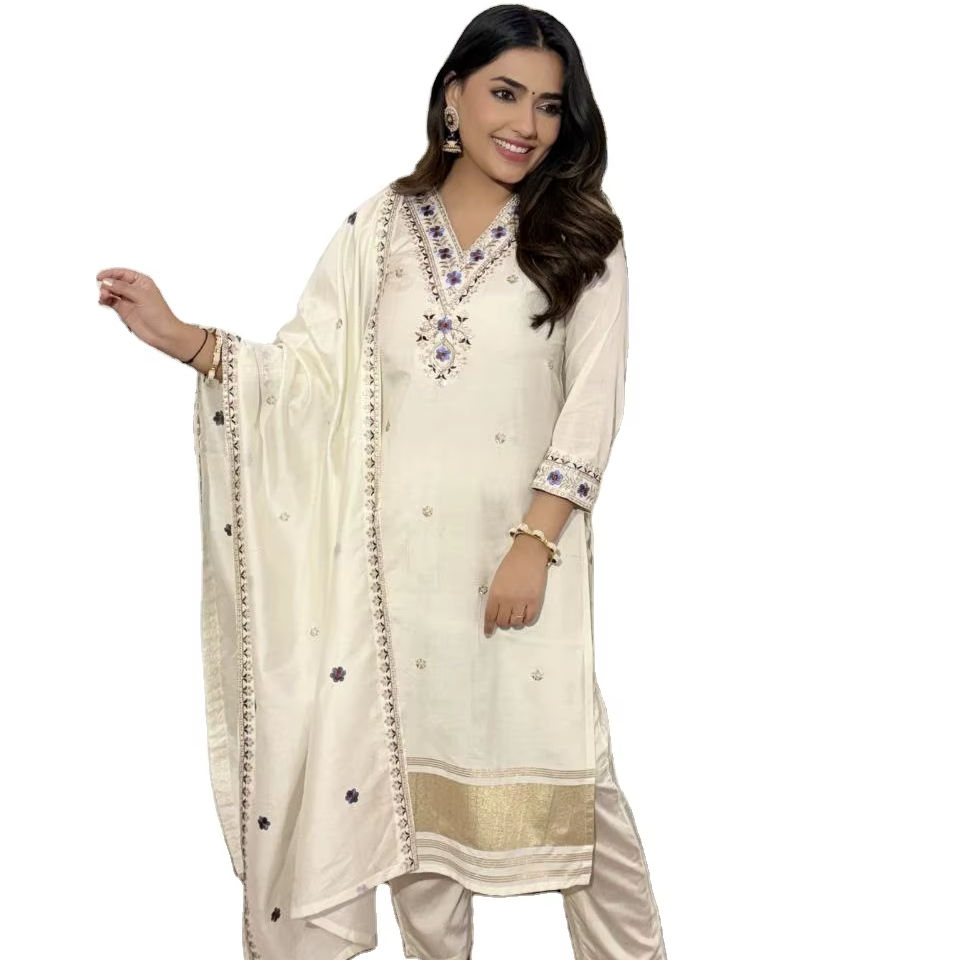 Kurti magnifiquement conçu, confectionné avec des concepts d'impression bicolore au toucher doux et des embellissements en pierre incrustée, idéal pour les séances photo de catalogue.