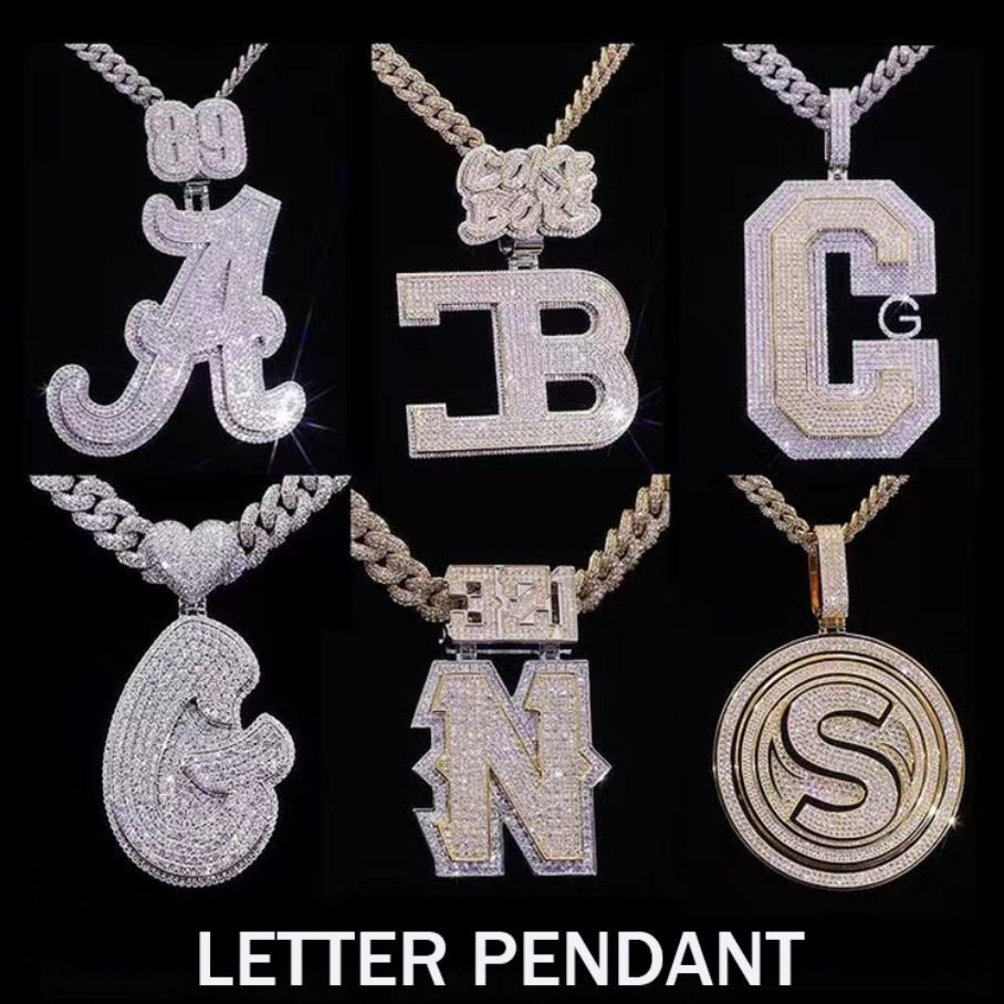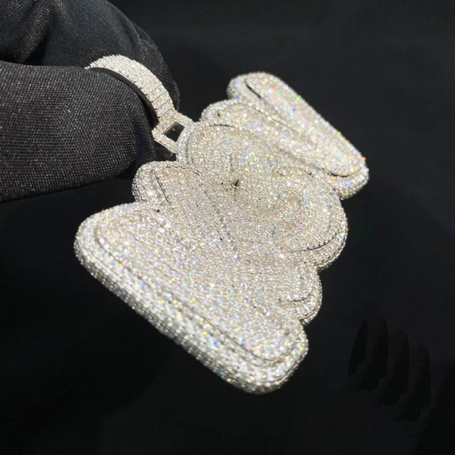 Nom:Pendentif en argent sterling avec logo de conception gratuite, lettre personnalisée, moissanite VVS