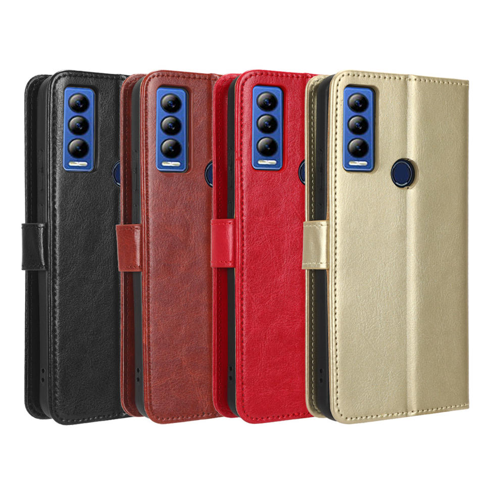 Étui en cuir PU motif cheval fou avec dragonne pour Cricket Ovation 3/AT & T Motivate Max(U668AA) étui de protection pour téléphone portable