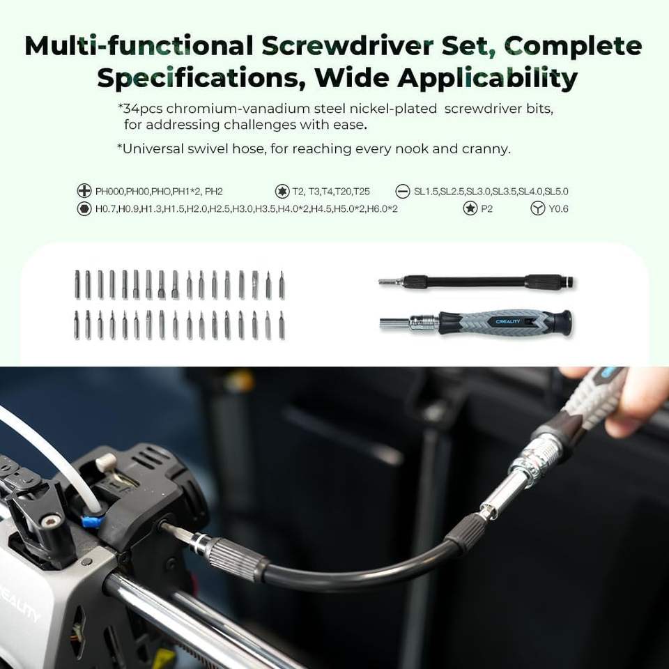 Kit d'outils pour imprimante 3D Creality, 74 pièces, avec étui de transport, pour toutes les imprimantes 3D FDM, assemblage, démontage, finition, coupe de filament, chrome