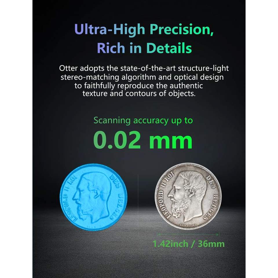 Scanner 3D Creality Otter Précision 0,02 mm Vitesse 20 images par seconde Pour Windows Mac