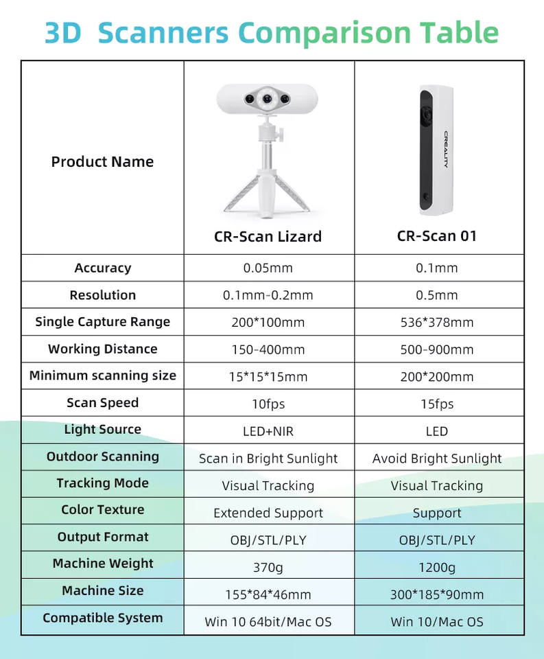 Scanner 3D Creality CR-Scan Lizard Luxury, précision de 0,05 mm, machine de numérisation 3D, nouveauté 2022