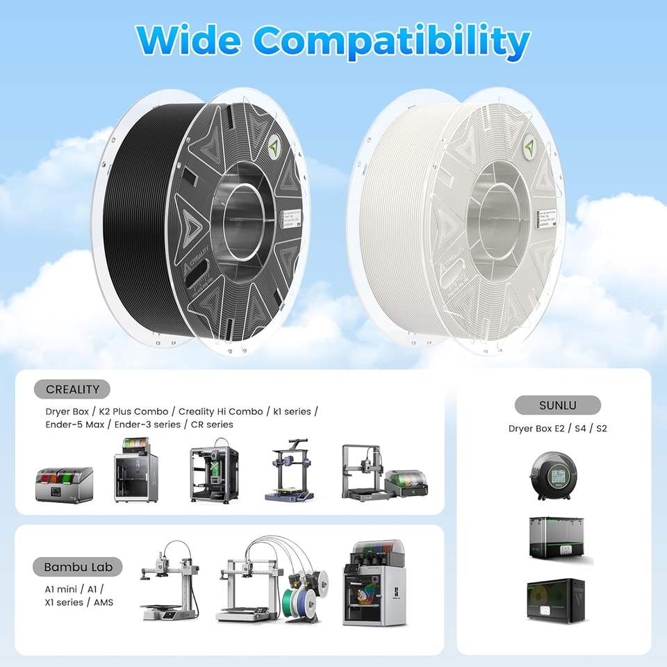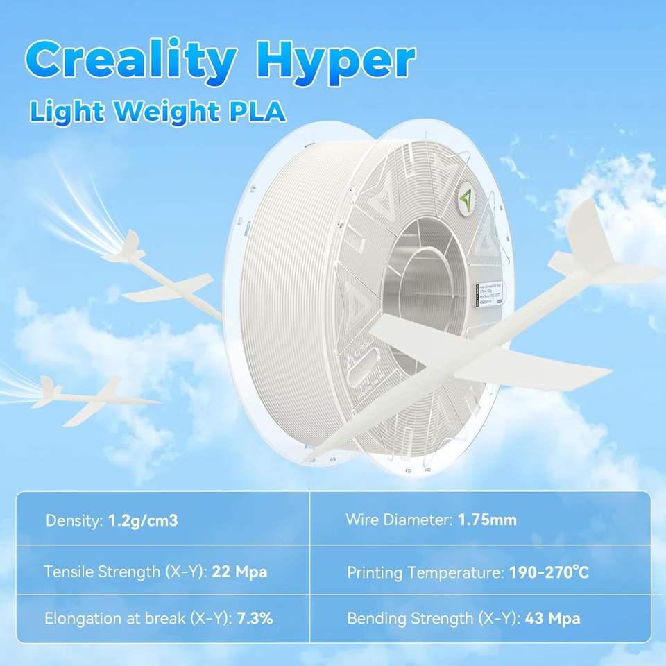 Filament PLA Hyper Léger Creality 1,75 mm 1 kg Noir Matériau d'impression 3D Faible Densité Mousse Active