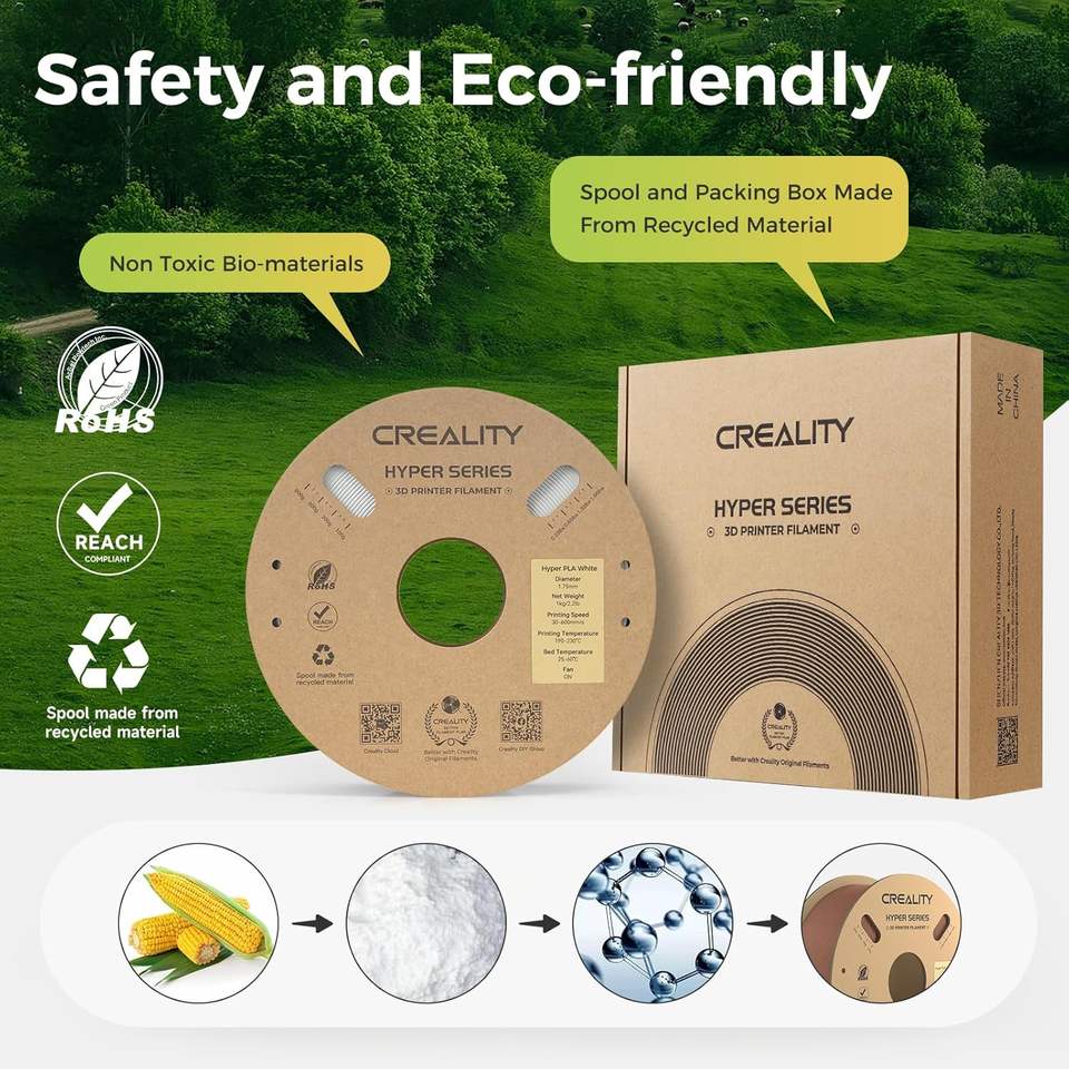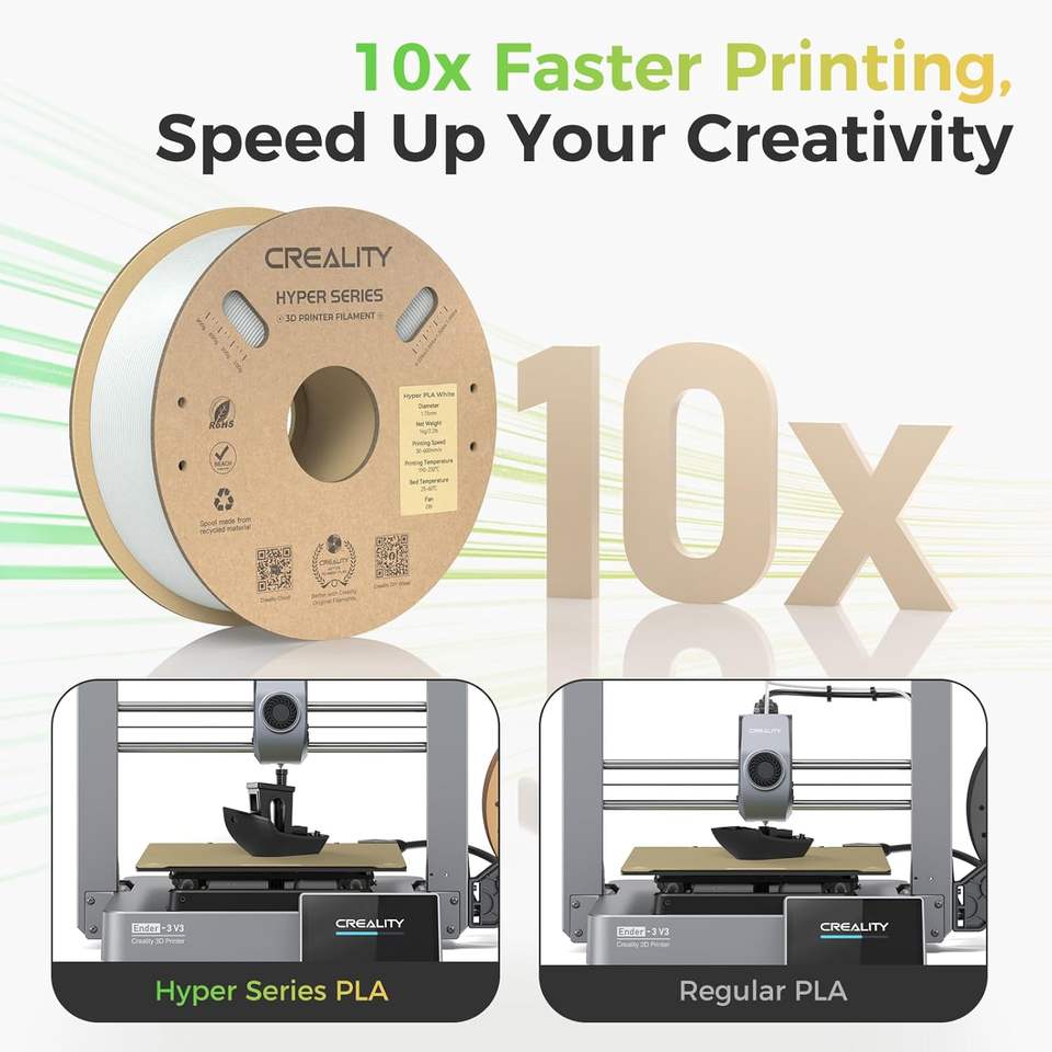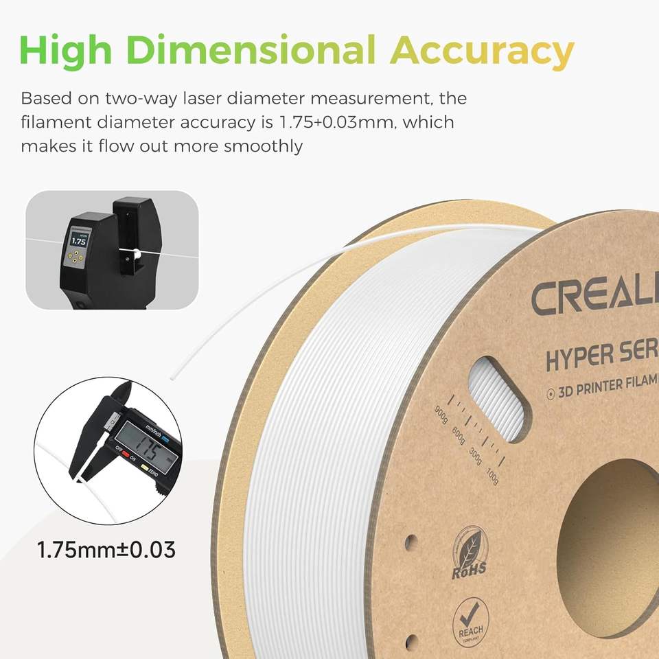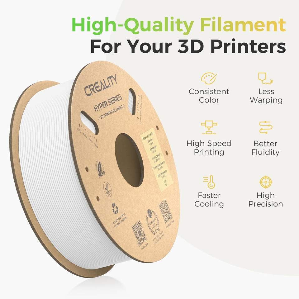 Filament Creality Hyper PLA 1,75 mm Blanc, Filament pour imprimante 3D, Matériau d'impression haute vitesse, Bobine de 1 kg