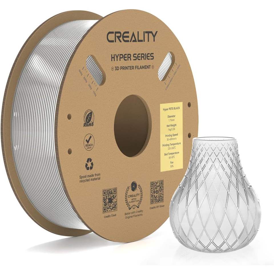 Filament Hyper PETG Officiel Creality 1,75 mm Transparent 1 Kilogramme Matériel d'Imprimante 3D Haute Vitesse 30-600 mm/s 0,03 mm