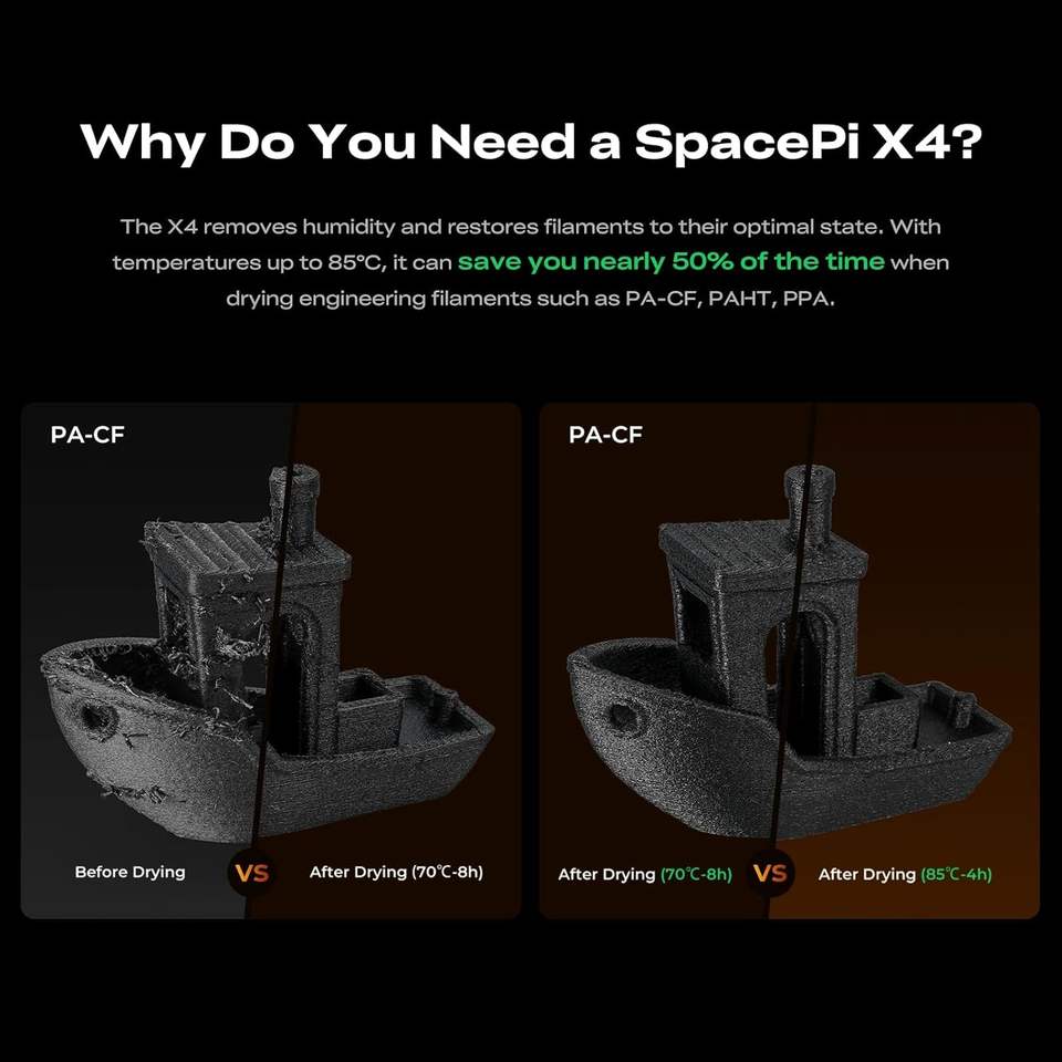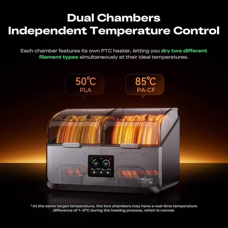 Boîte de séchage de filament Creality SpacePi X4, 4 bobines, double compartiment, 200W, chauffage rapide, stockage pour filament plastique d'imprimante 3D