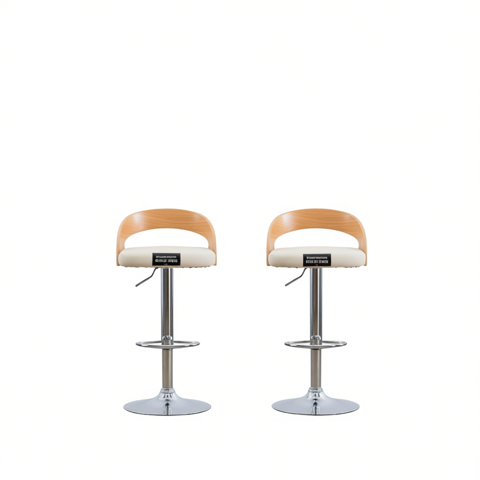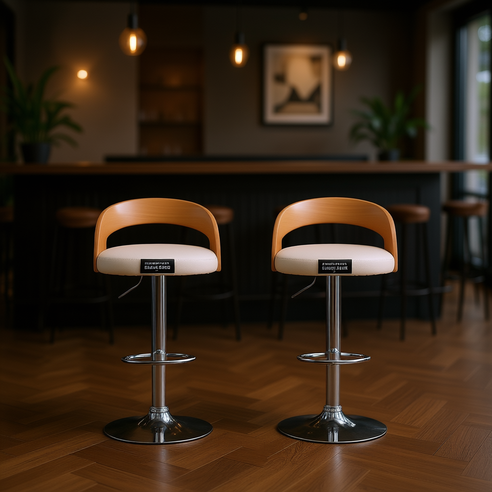 Tabourets de bar crème et brun clair avec base chromée, design moderne et contemporain pour usage commercial