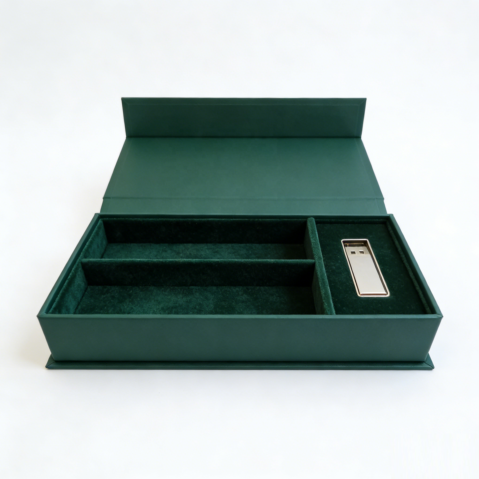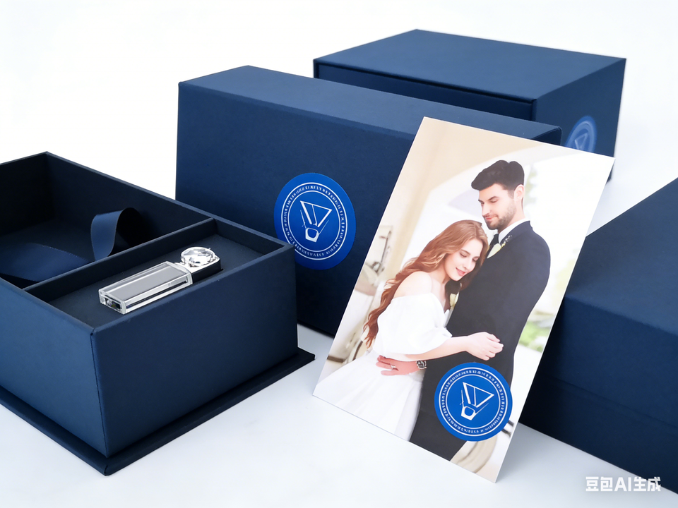 Boîte de rangement personnalisable en papier couché crème pour impressions photo gaufrées, cadeau pour photographe avec clé USB en verre cristal