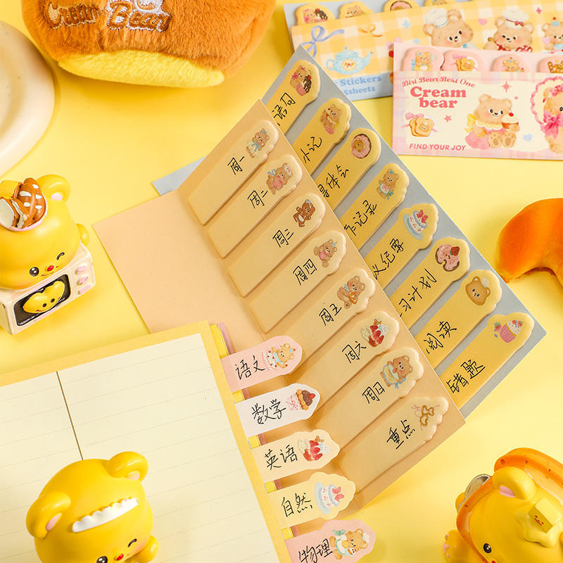 Autocollant d'index d'ours crème, onglets repositionnables réutilisables pour la prise de notes et le marquage de page, fournitures de planification de bureau d'étude mignonnes