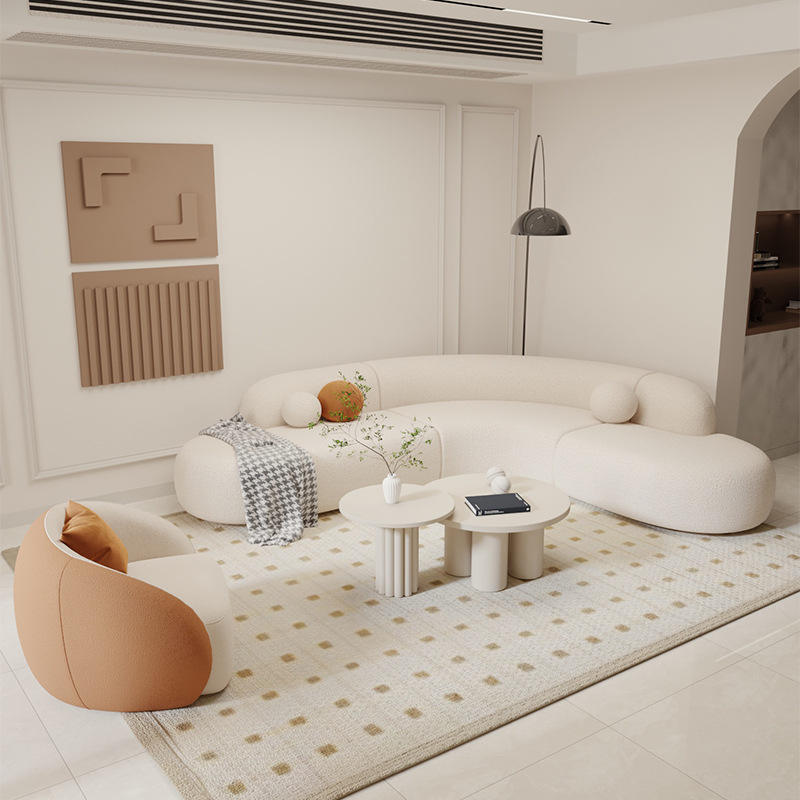Cream Colored Curved L Shaped Sofa Semicircular Modern Living Room Lounge Area With Coffee Table For Children Adults Elderly