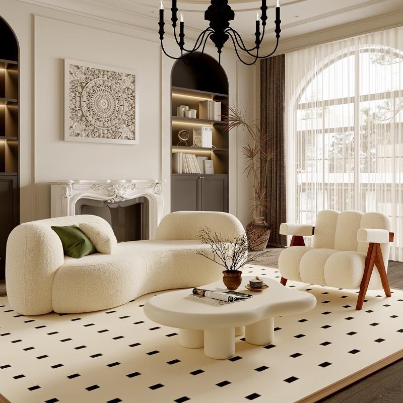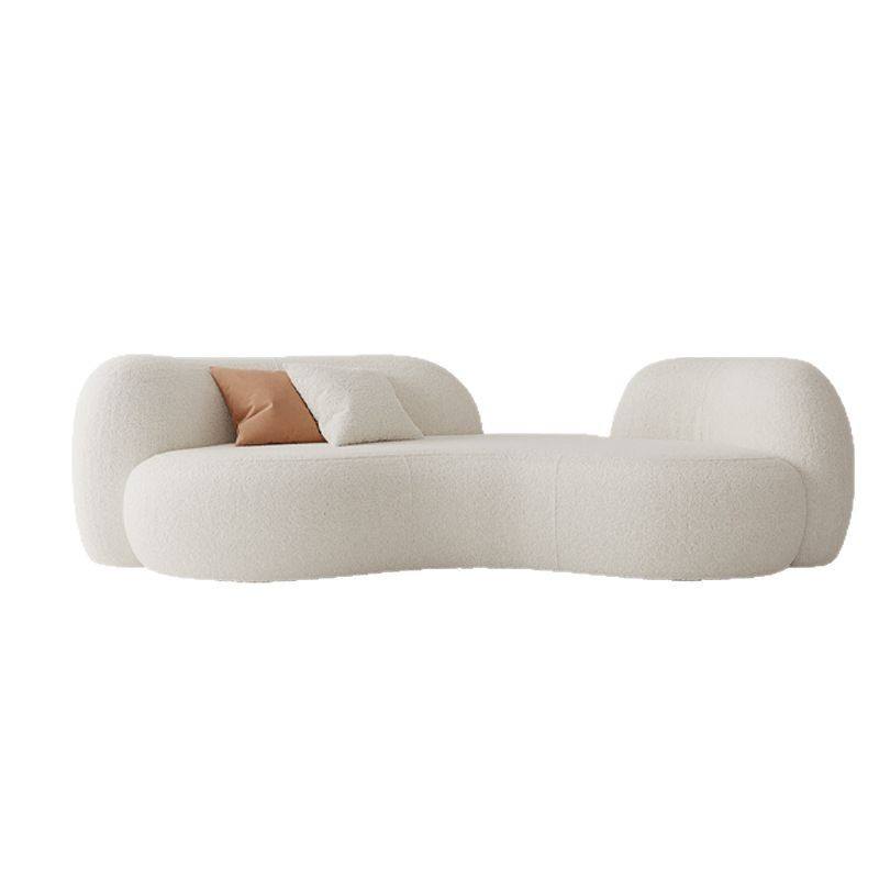 Canapé en cuir d'agneau couleur crème, design en arc en forme de S, mobilier moderne et minimaliste pour salon, idéal pour petit appartement ou zone de réception