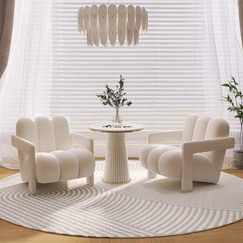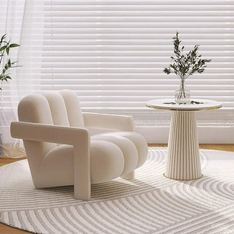 Fauteuil lounge de couleur crème, canapé simple moderne et minimaliste pour salon et balcon, tissu floqué, rembourrage en mousse