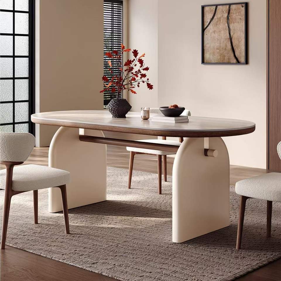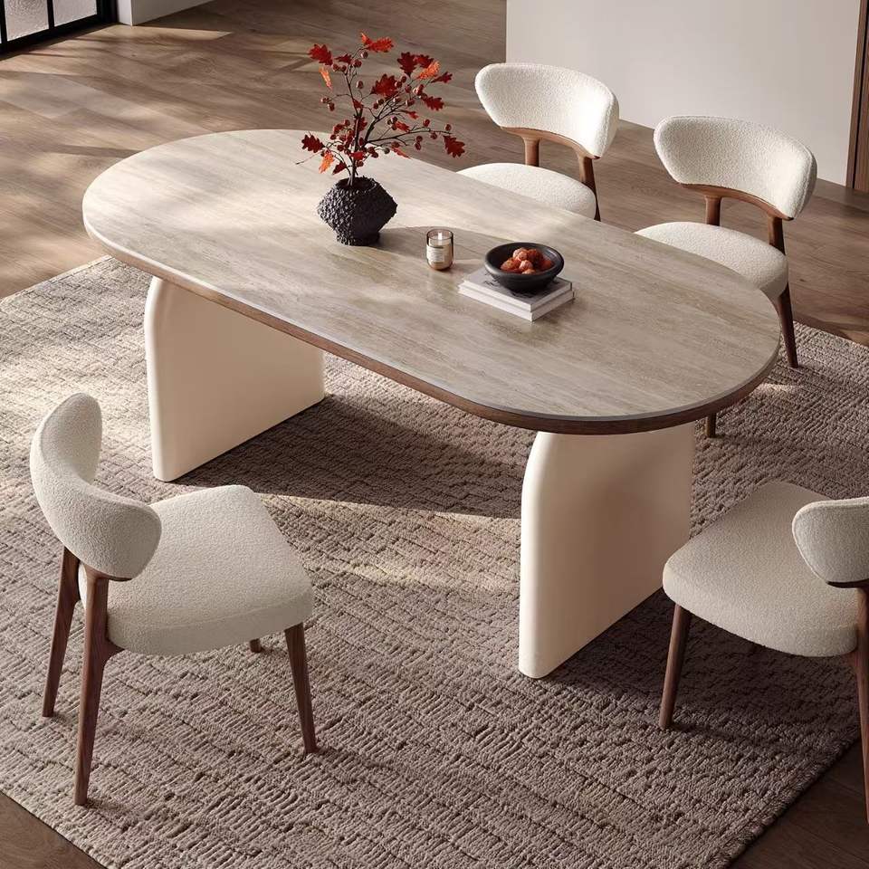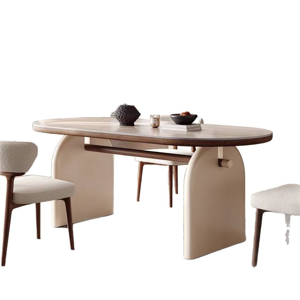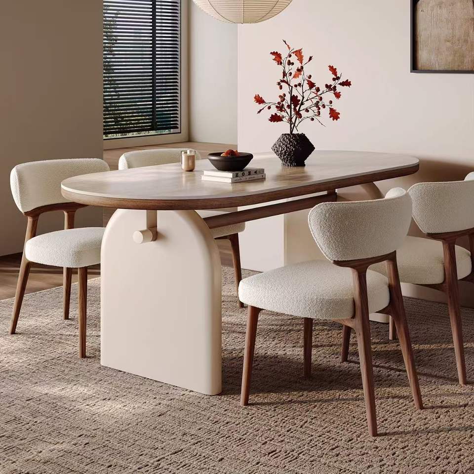 Ensemble de table à manger ovale en bois massif de couleur crème, 4 pièces, style nordique, meubles de salle à manger gain de place