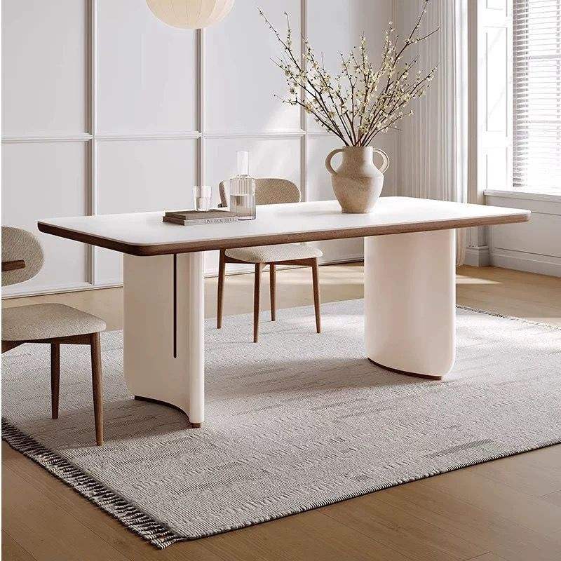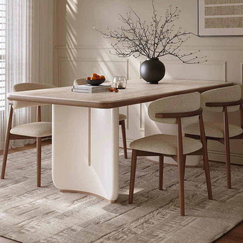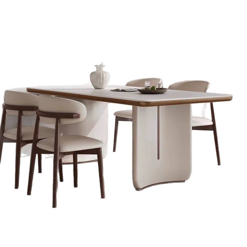 Cream Colored Slab Dining Table Rectangle Stable Solid Wood Modern Minimalist Design For Small Homes Light Luxury Style