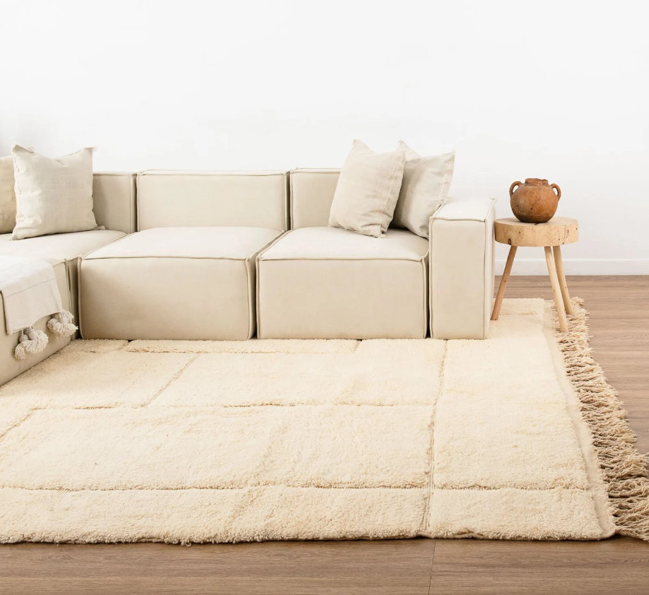 Mode:Tapis Beni Ourain à carreaux gravés doux crème