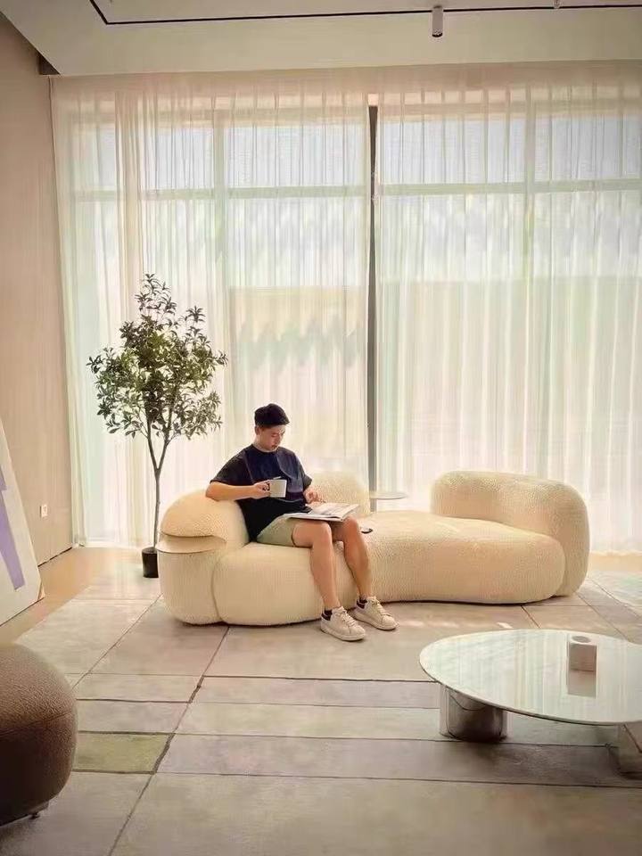 Canapé en bois courbé inclinable à une place de style italien de luxe léger pour petit appartement, salon, magasin de vêtements, salon de beauté
