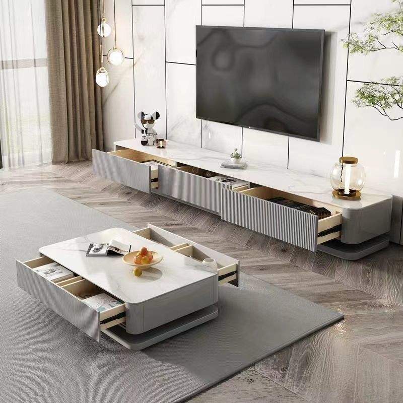 Meuble TV et table basse en ardoise de style crème-Casier de rangement minimaliste moderne pour petit appartement salon maison