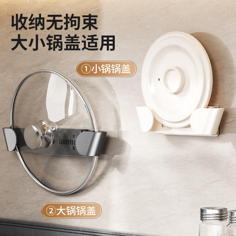 Support mural rotatif pour couvercles de casseroles, en forme de ventouse, réglable, pour le rangement des ustensiles de cuisine, en PP rond