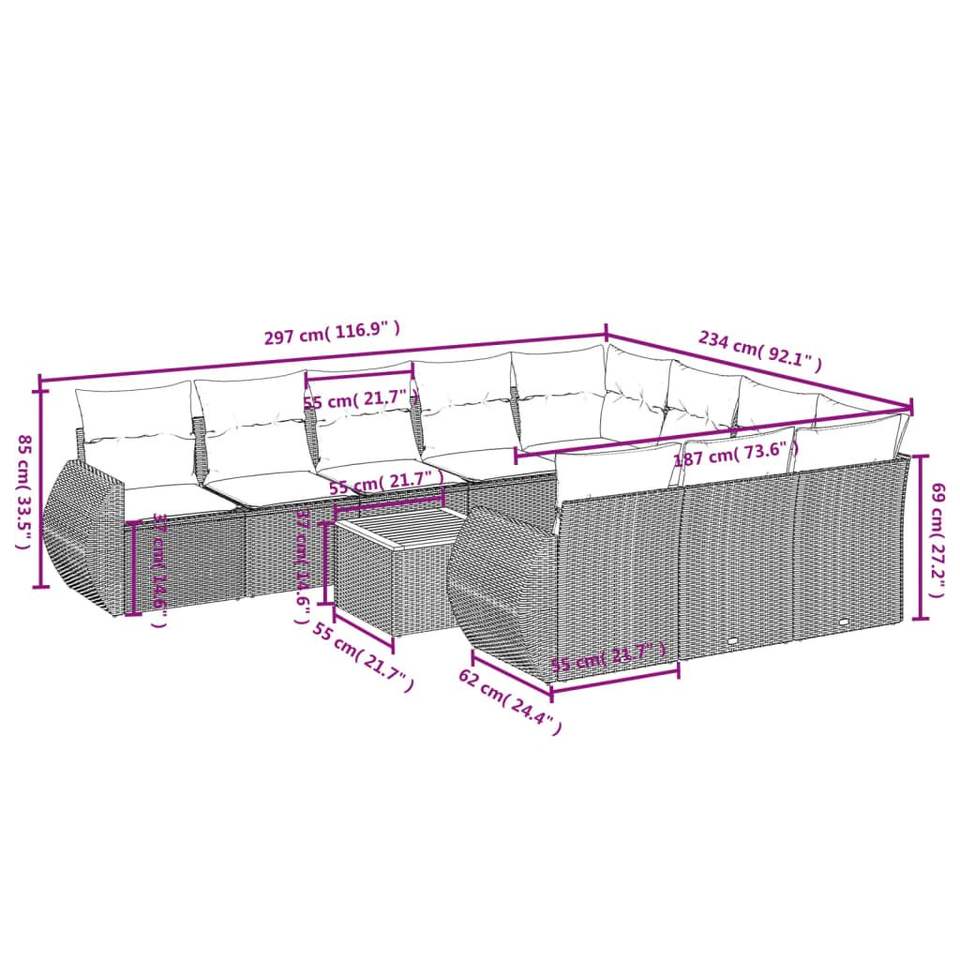 Ensemble de salon de jardin en rotin blanc crème et noir, 10 places, mobilier d'extérieur, design contemporain