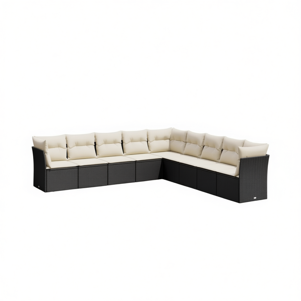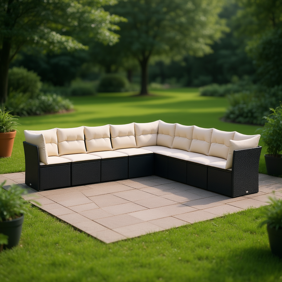 Ensemble de salon de jardin en rotin blanc crème et noir, 10 places, mobilier d'extérieur, design contemporain