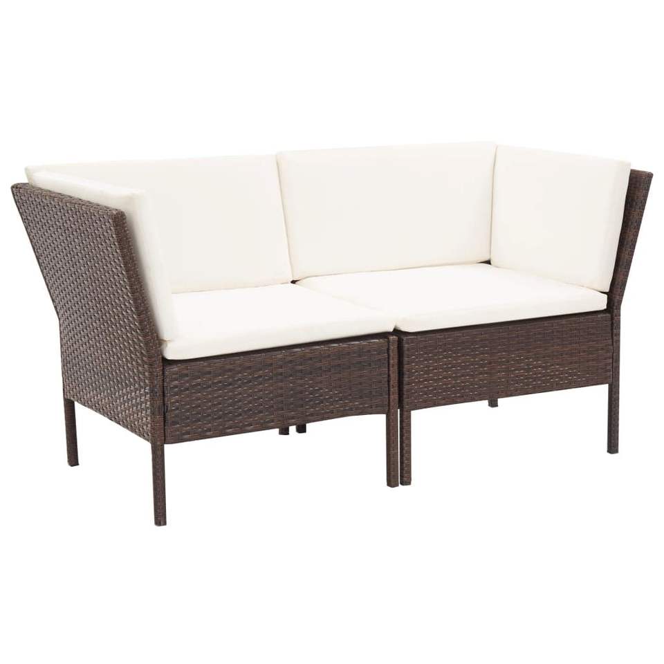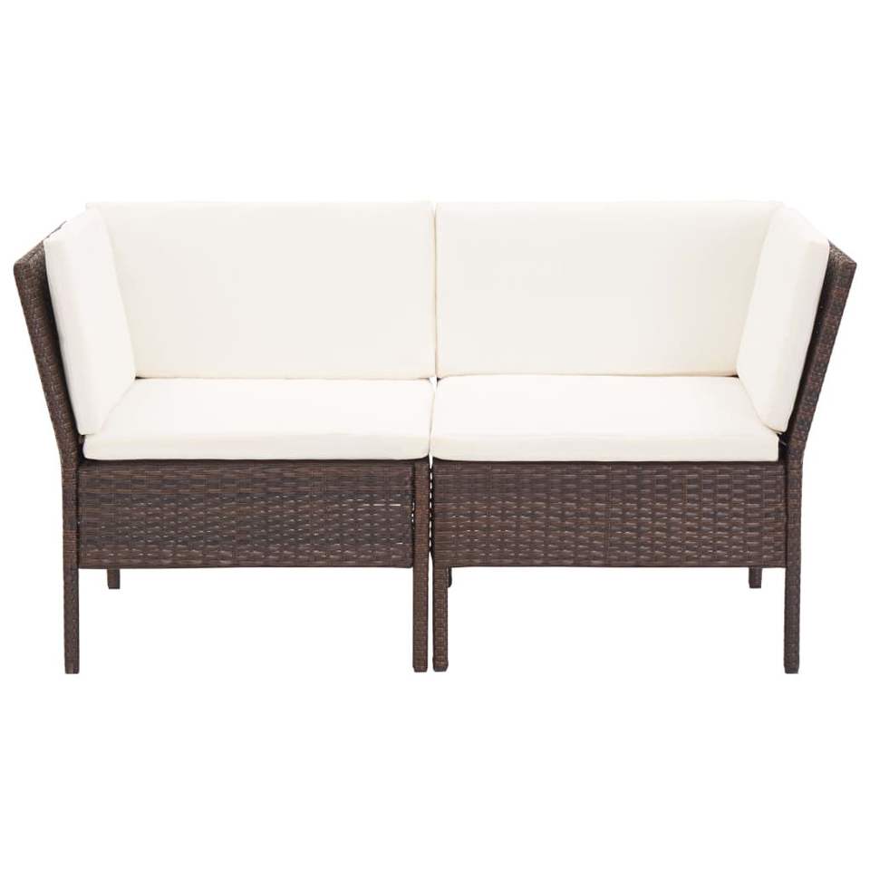 Ensemble de salon de jardin en rotin blanc crème et brun avec coussins pour usage extérieur, 6 places, style contemporain