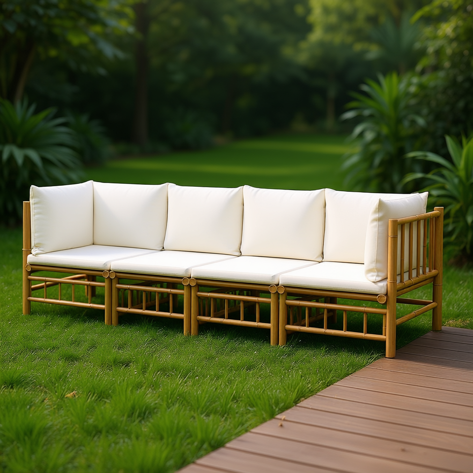 Ensemble de canapés modulaires en bambou pour jardin, meubles d'extérieur, coussins durables, utilisation en jardin