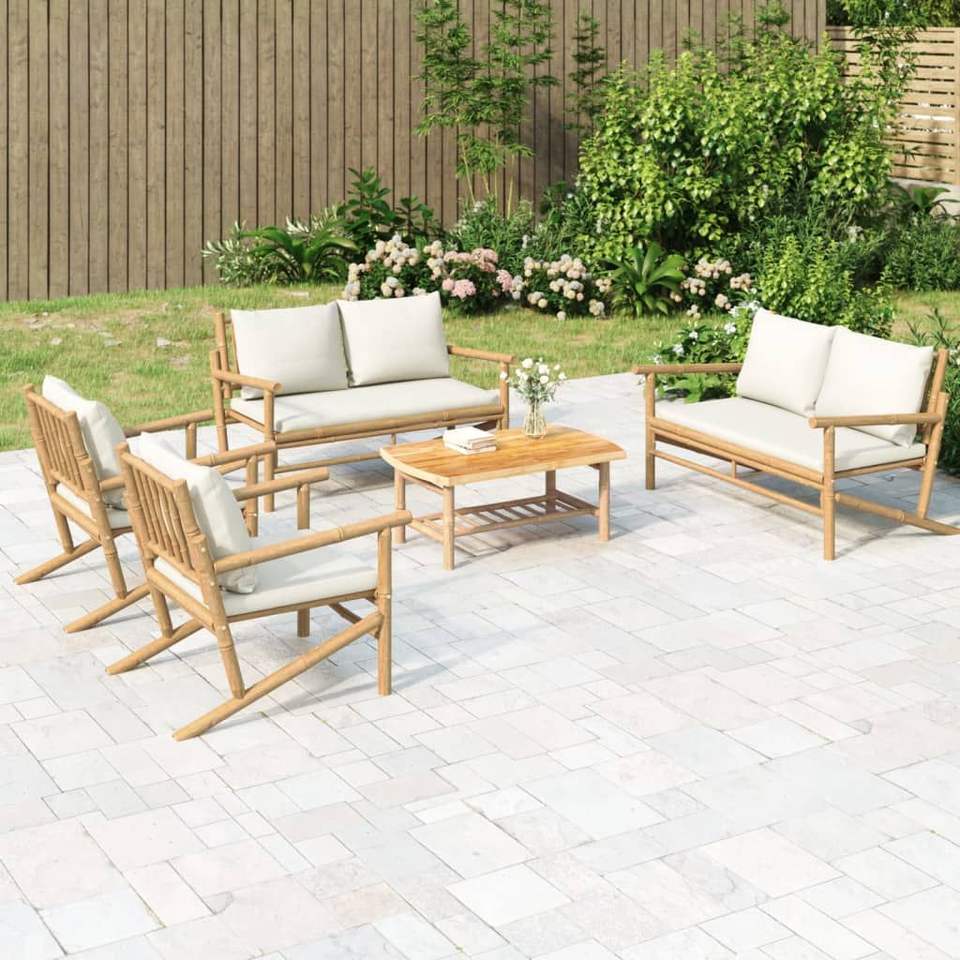 Ensemble de salon de jardin modulaire en bambou blanc crème de grande taille