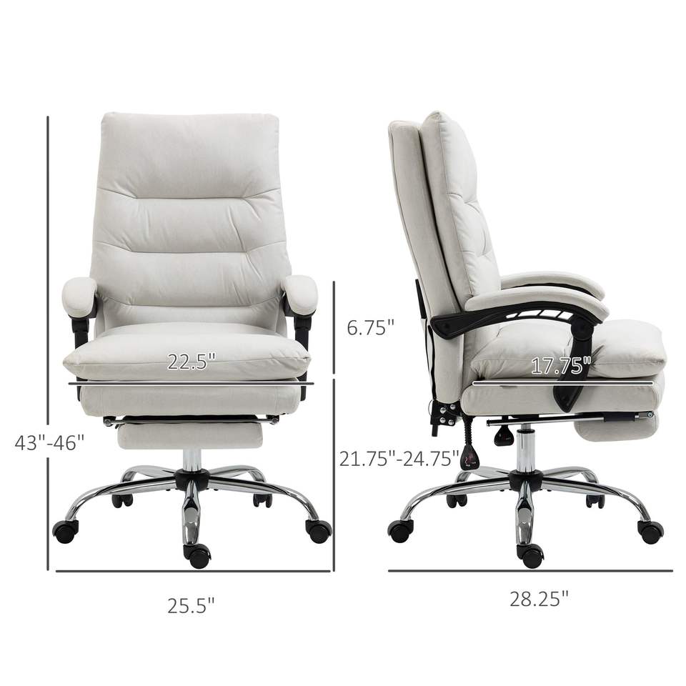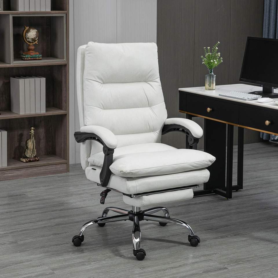 Fauteuil de bureau inclinable en microfibre blanc crème avec repose-pieds et accoudoirs chauffants, massage et vibration