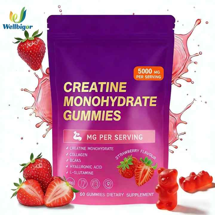 Gommes à la créatine monohydratée 5000 MG par portion, saveur fraise, sans sucre, sans gluten, collagène, BCAA, 60 unités, complément alimentaire