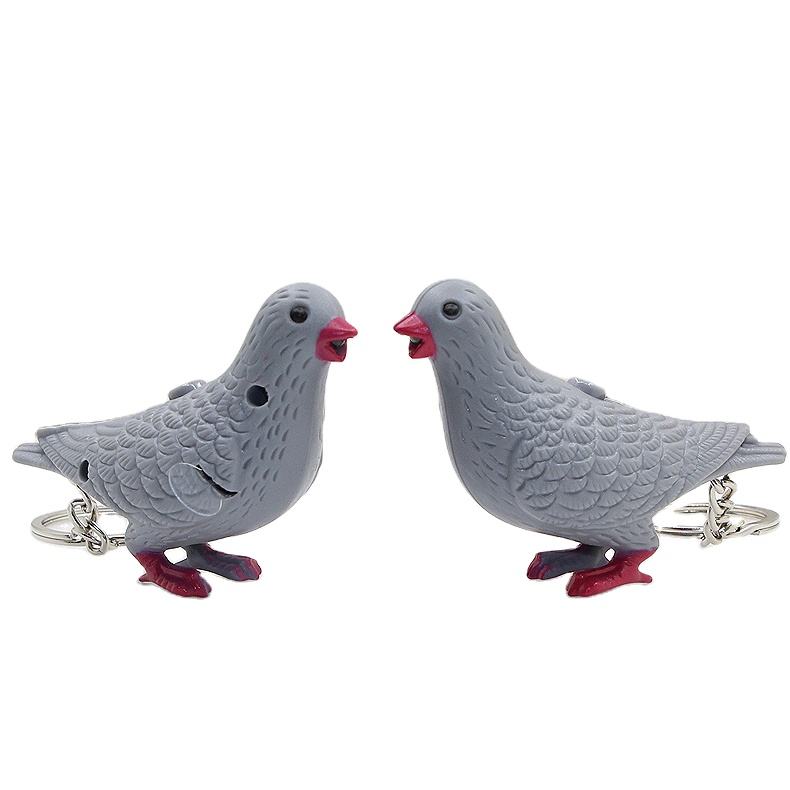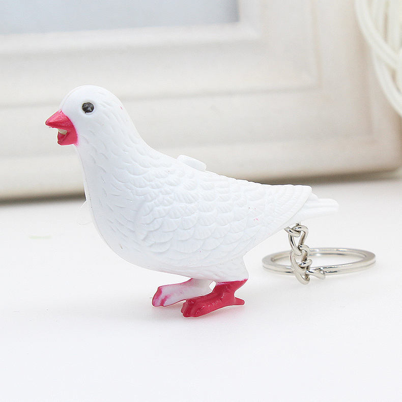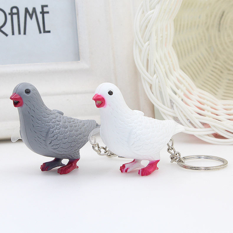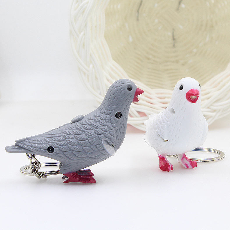 Porte-clés créatif en plastique 3D en forme de pigeon avec lumière LED et son COO COO~ Porte-clés d'oiseau pour promotion de cadeaux