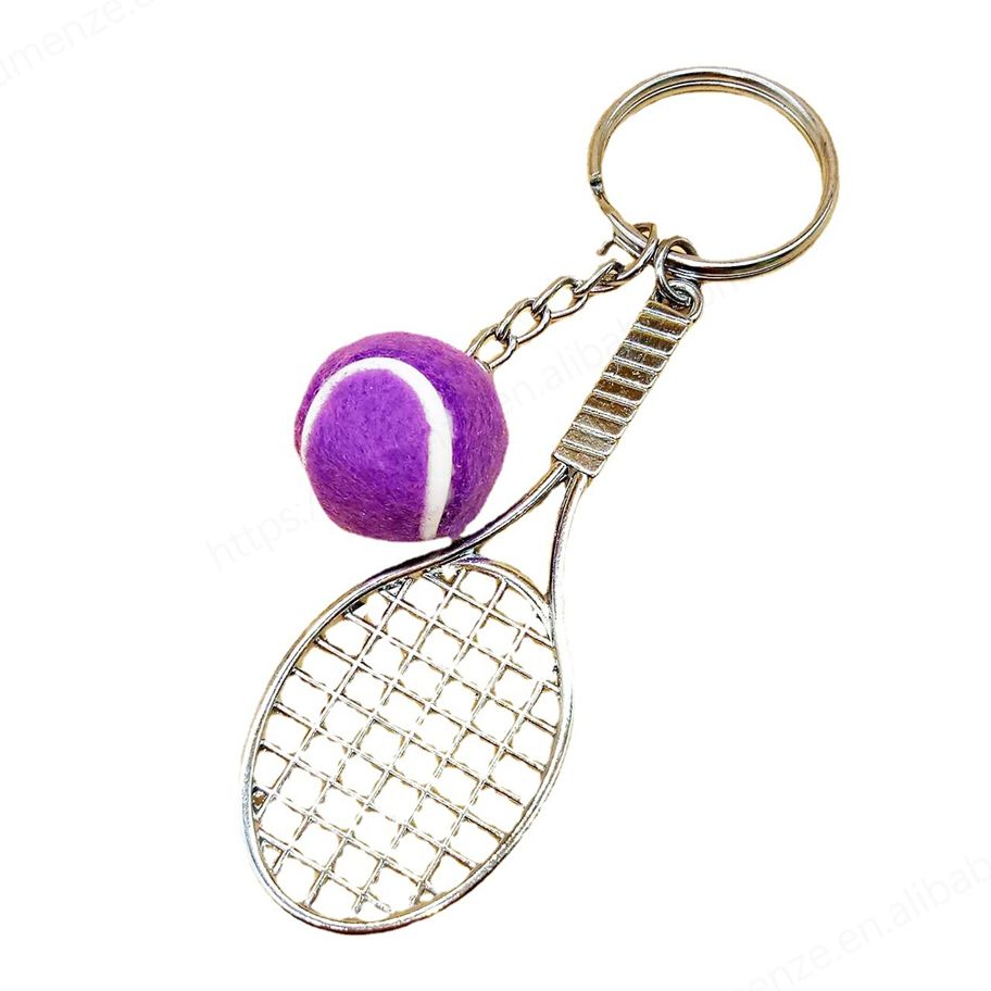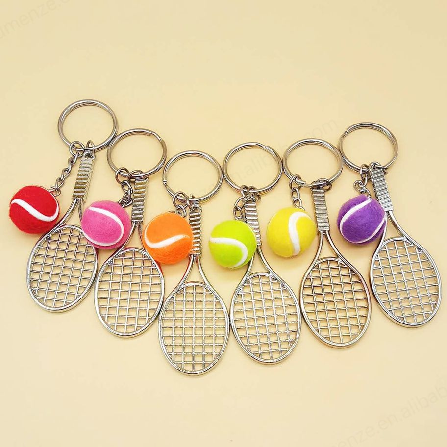 Porte-clés créatif en alliage de balle de tennis et de raquette, cadeau promotionnel publicitaire pour les activités sportives, vente en gros