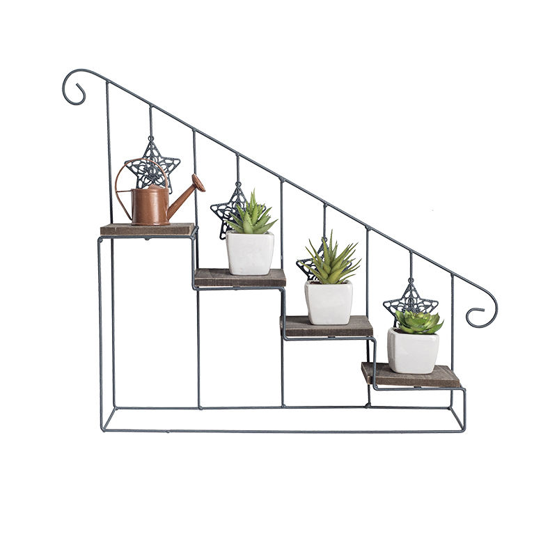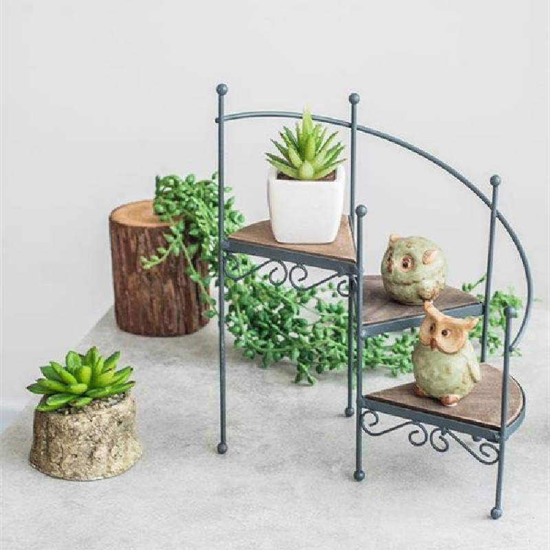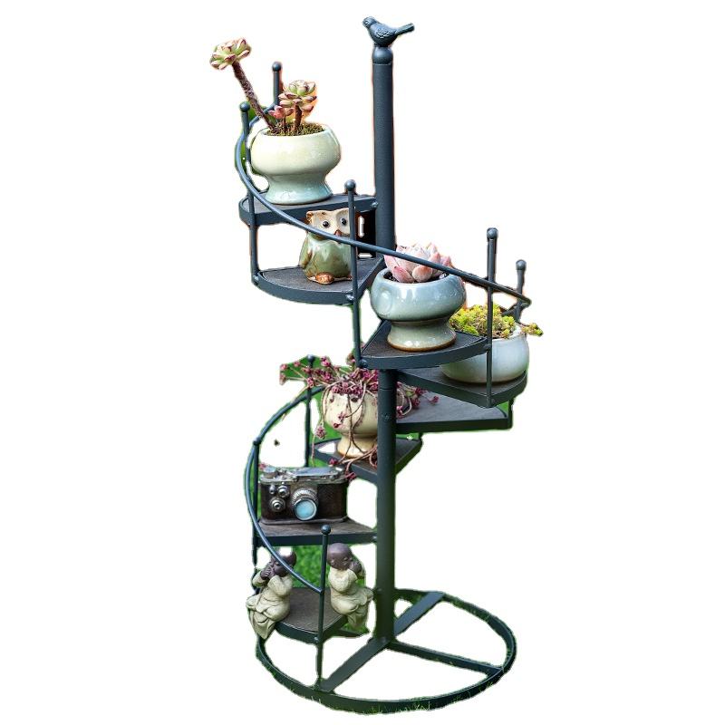 Support à fleurs multi-niveaux en métal forgé léger, style américain créatif, escalier tournant, revêtement en poudre, noir