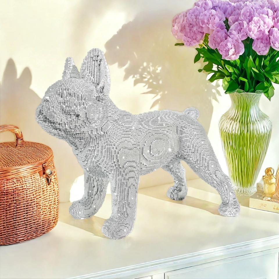 Figurine de chien en résine avec blocs de construction artistiques dorés, sculpture créative pour la décoration de bureau à domicile, article haut de gamme