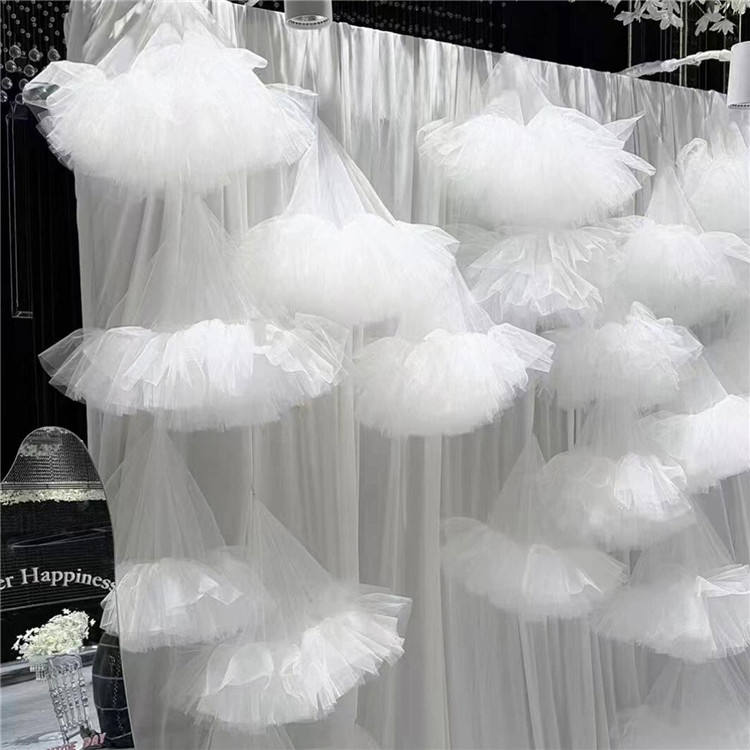 Accessoires de mise en page de toile de fond créatifs suspendus en forme de nuage voile de gaze en maille de soie pour la décoration de toile de fond d'événements de mariage