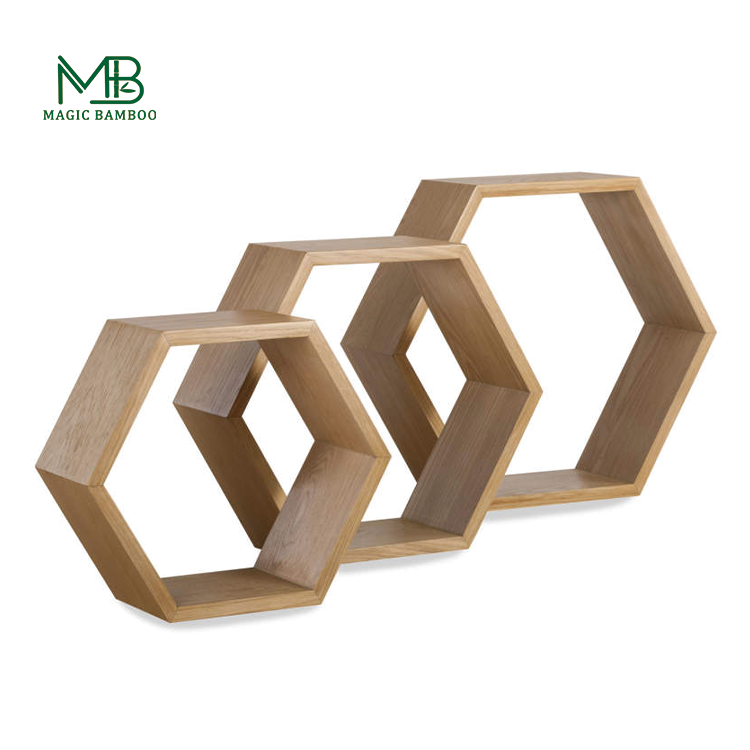 Étagère de rangement multifonctionnelle hexagonale murale en bambou créatif pour salon, salle de bain, design moderne de ferme, sac à outils