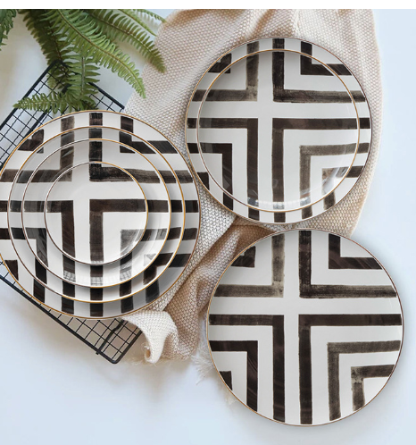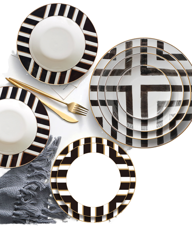 Service de table en porcelaine fine créative, bols, assiettes, ensembles blancs avec bordure dorée, céramique haut de gamme, motif croisement, vaisselle, ensembles de dîner