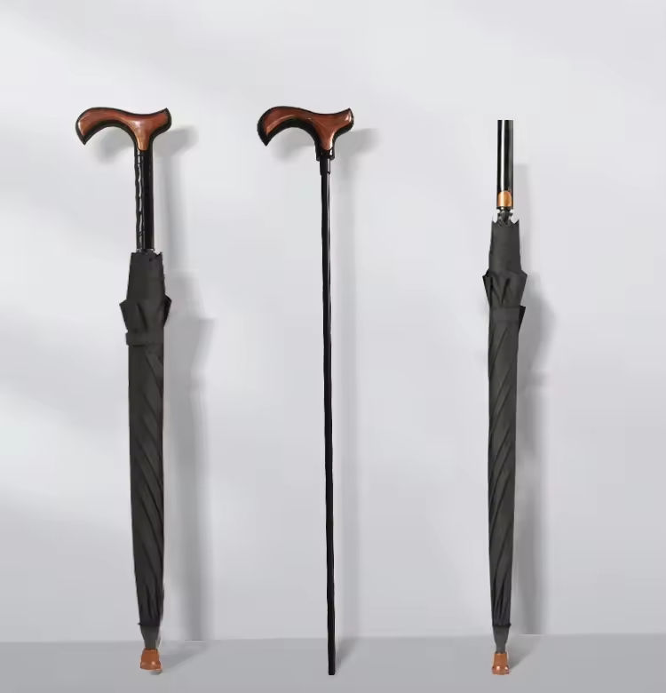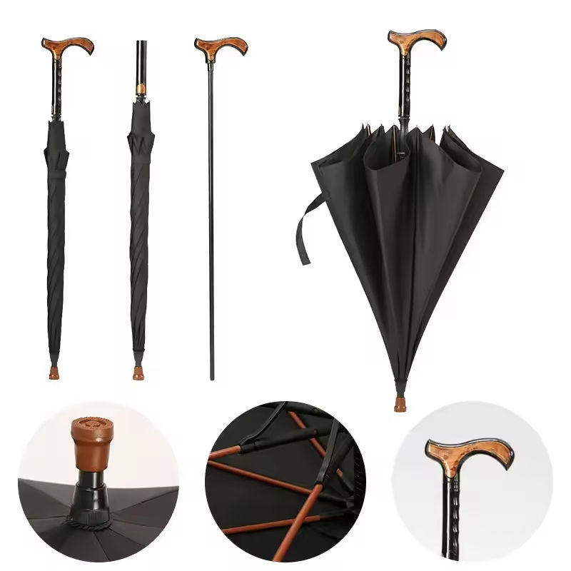 Parapluie de vieil homme avec poignée de canne créative avec haut antidérapant parapluies personnalisés de randonnée multifonctionnels