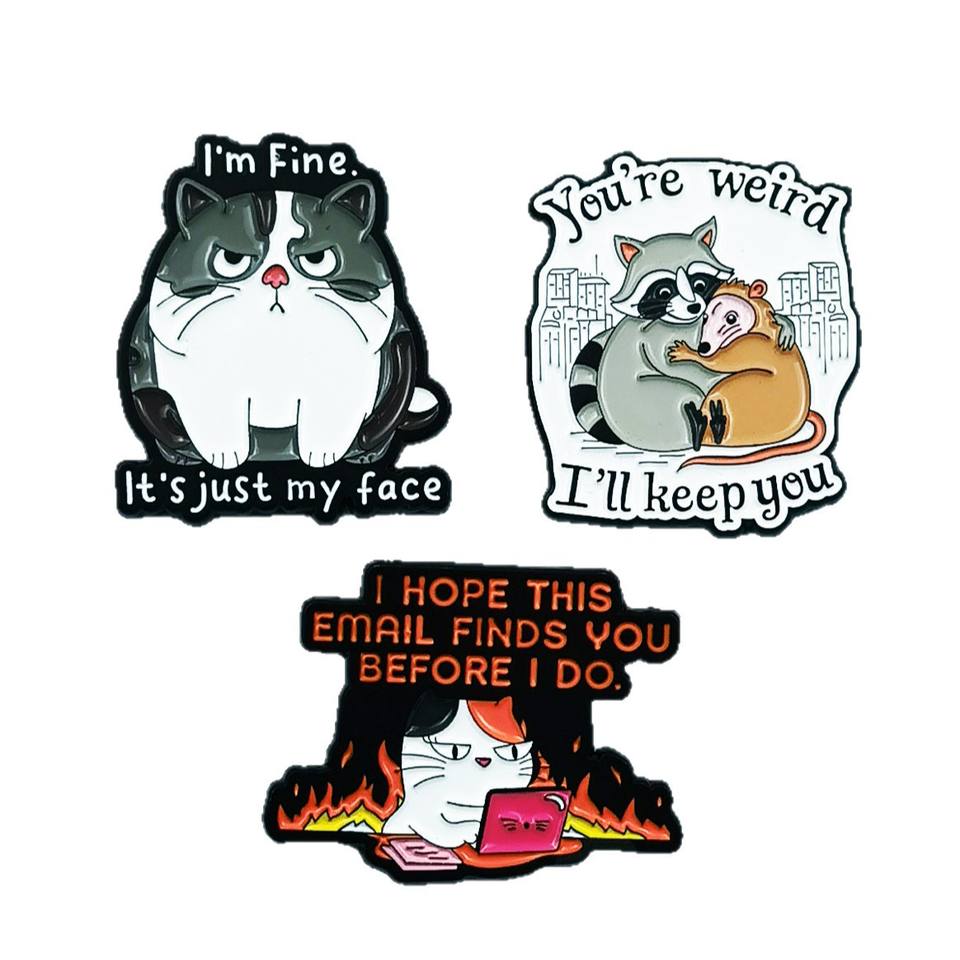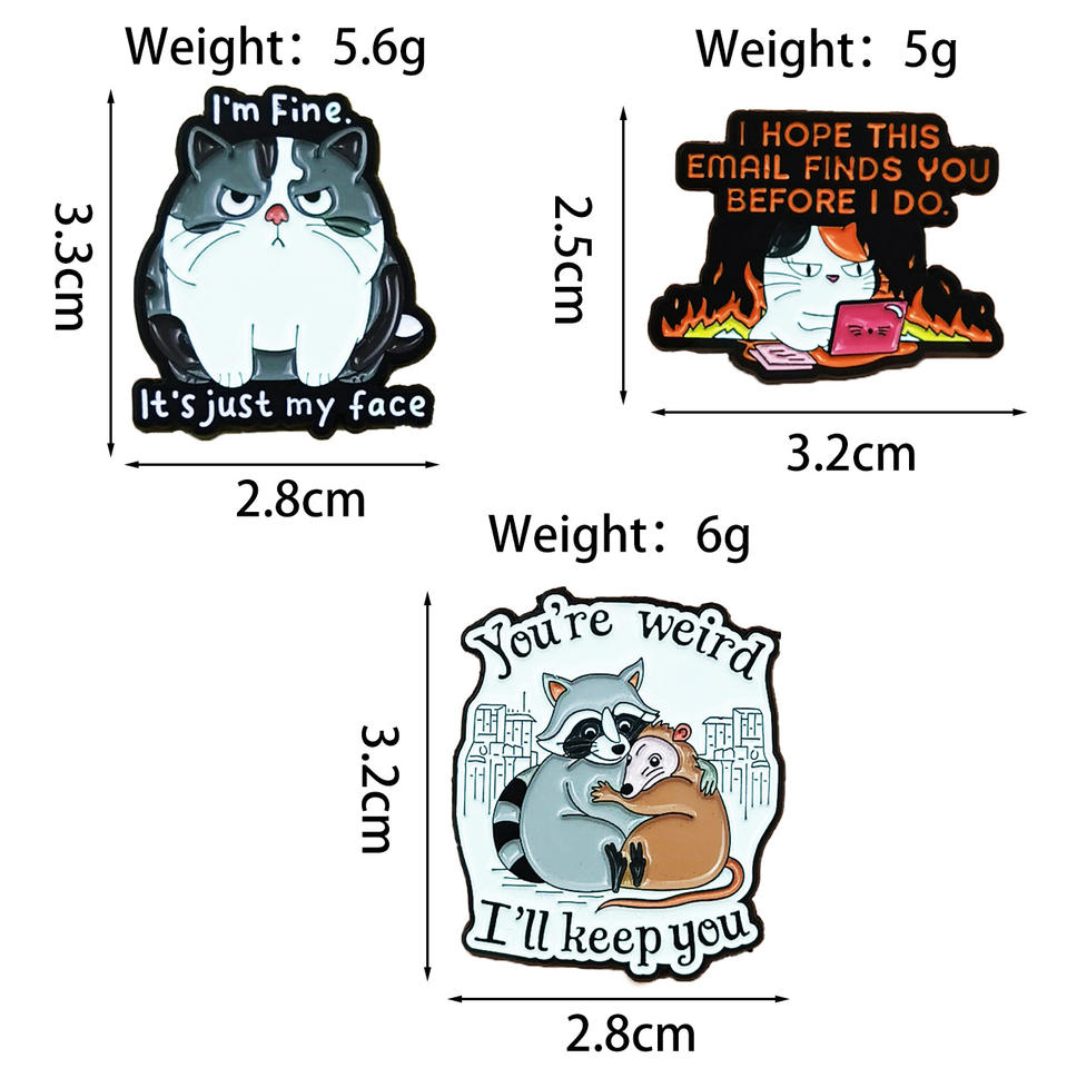 Broche créative en forme d'animaux de dessin animé (chat et raton d'Inde), amusante et personnalisée avec des phrases en anglais, accessoire de mode en stock