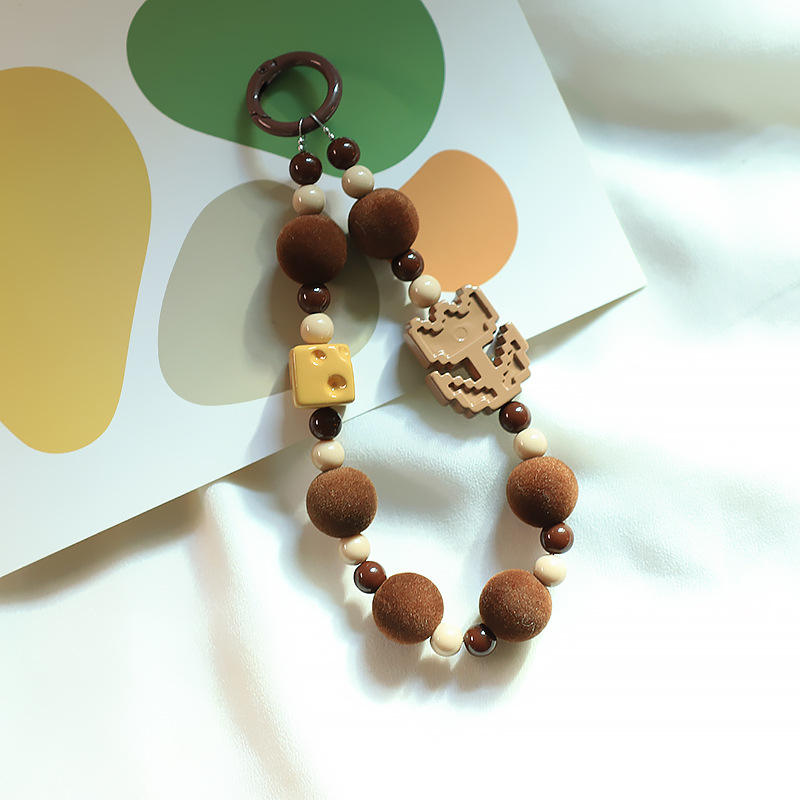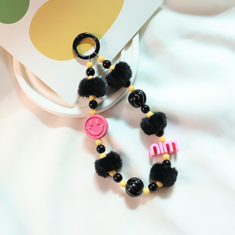 Chaîne de téléphone créative en forme de chat de dessin animé, pendentif mignon en PVC avec boule de fourrure, porte-clés avec impression sérigraphique pour accessoires d'automne et d'hiver