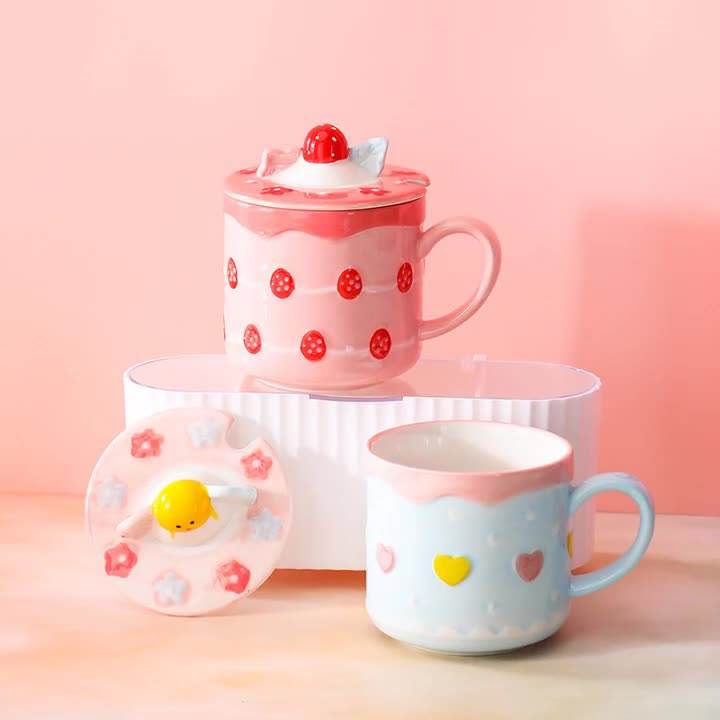 Tasse en céramique mignonne de dessin animé créatif avec haute apparence pour tasse à eau de thé et de café avec couvercle cuillère cadeau stimulant l'humeur amoureux des filles