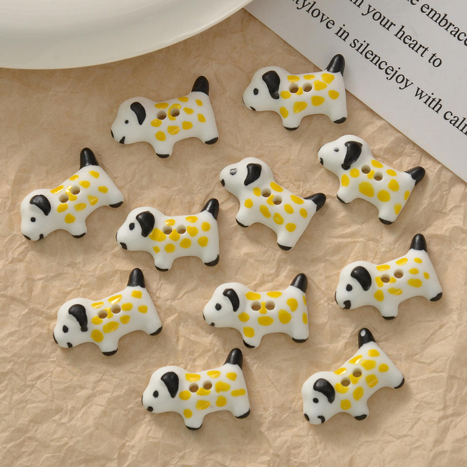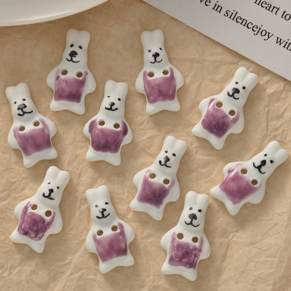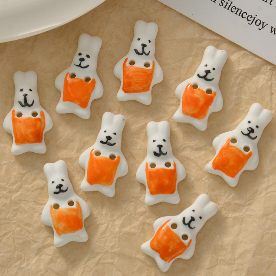 Bouton animal en porcelaine pour la décoration de vêtements pull-over perlé accessoires créatif dessin animé mignon lapin chiot chien argile céramique