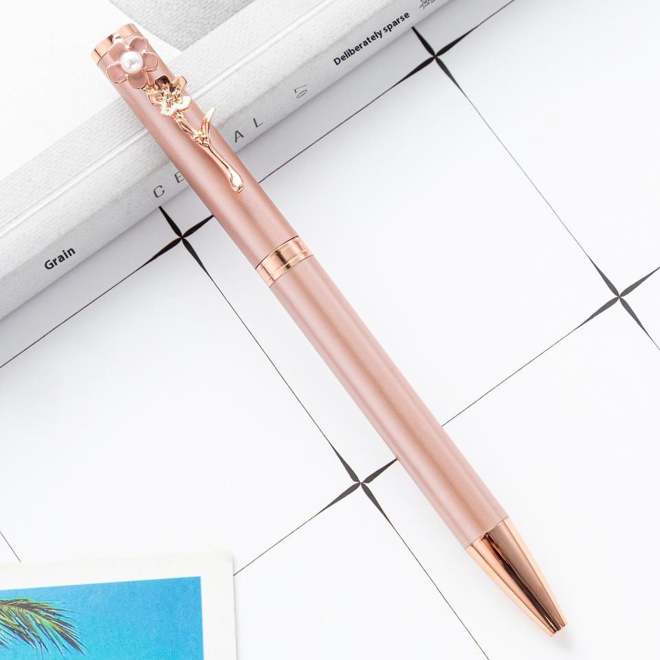 Stylo à bille en métal créatif avec motif de fleurs de dessin animé, papeterie promotionnelle, encre noire 1,0 mm ZGBROTHERS