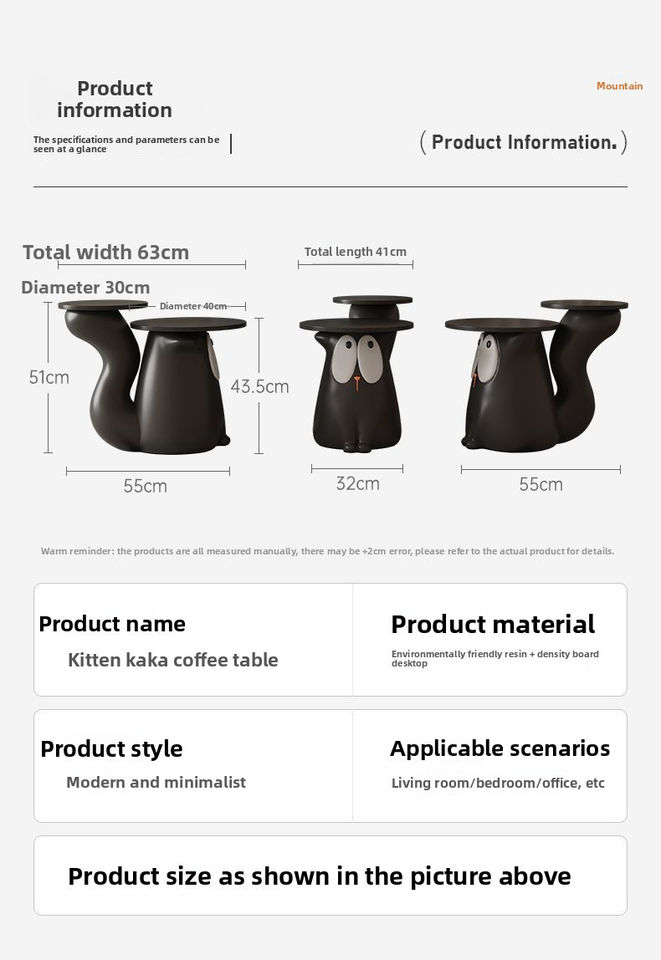 Table d'appoint créative pour chat Pièce décorative pour le sol Petite table basse de rangement Canapé de salon Meuble TV Table basse créative
