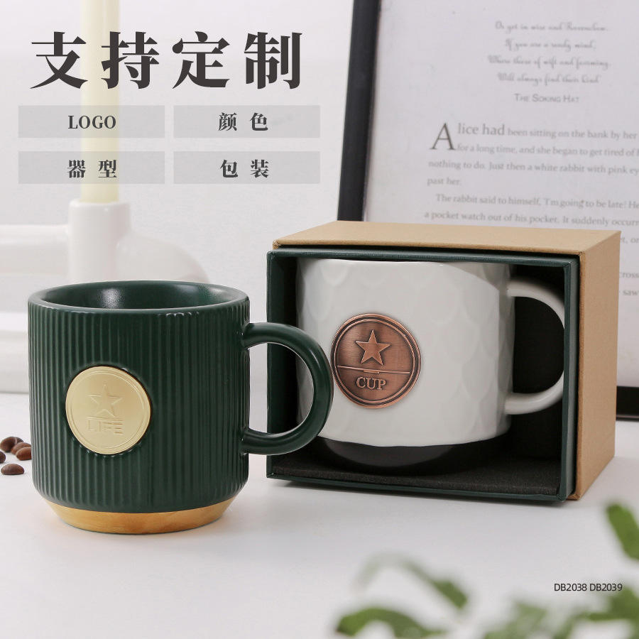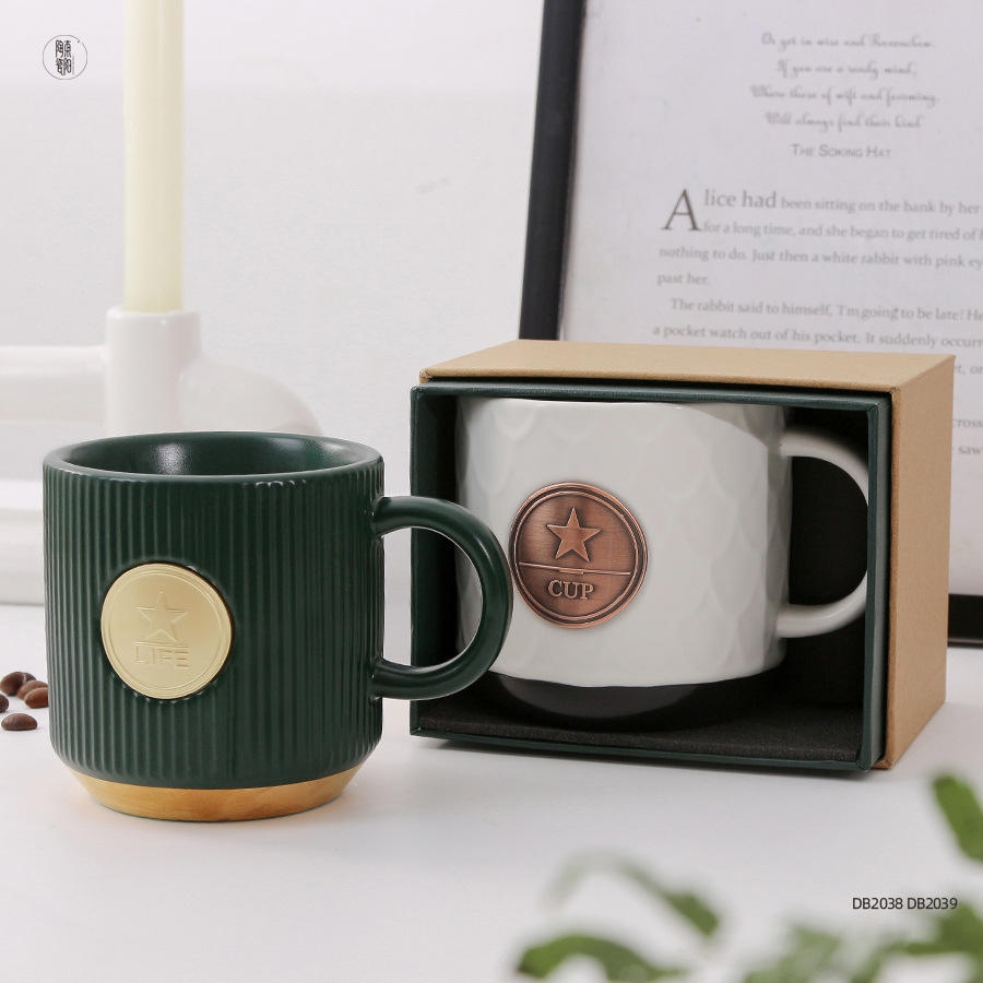 Mug à café en céramique créatif avec médaillon en bronze 370ml 500ml Finition mate Boîte cadeau incluse pour les cadeaux
