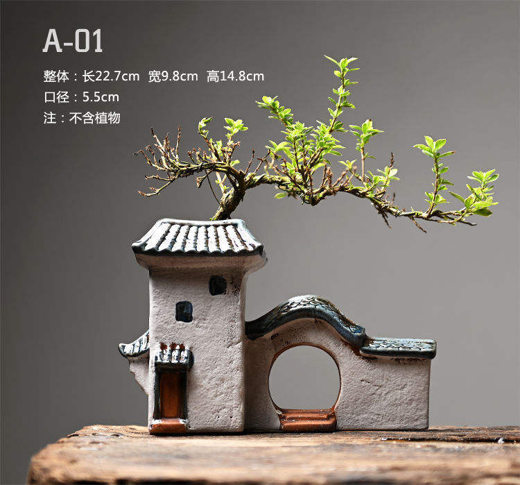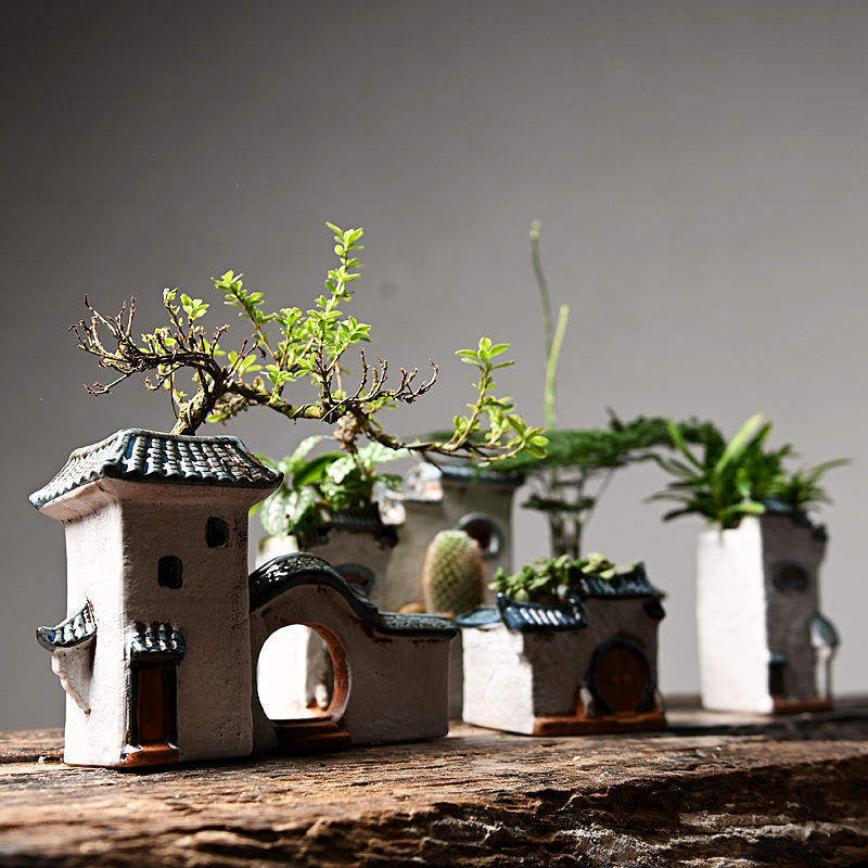 Pot de fleur charnu en céramique créatif poterie grossière bonsaï ornements vert plante de bureau rouge en pot maison Jiangnan pour intérieur
