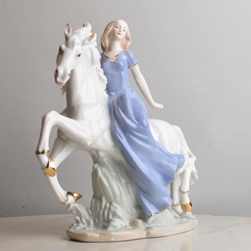 Décorations créatives pour la maison en céramique Figurine de fille d'équitation en porcelaine européenne Cadeau de mariage élégant Cadeaux de décoration pour la maison